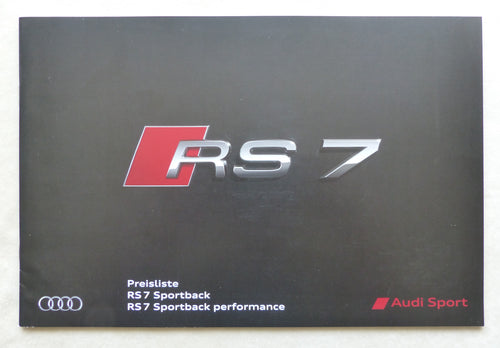 Audi RS 7 Sportback performance - Preisliste MJ 2016 - Prospekt Brochure 02.2016