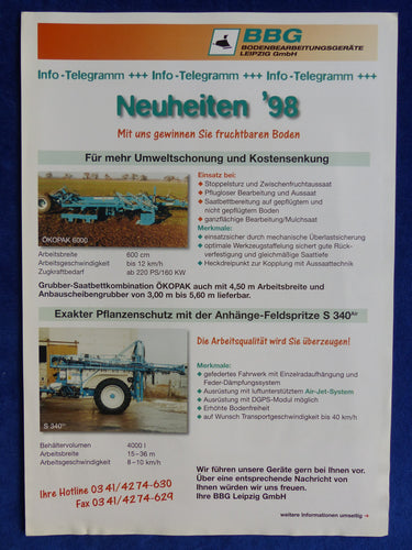 BBG Neuheiten '98 Grubber Spritzen Pflüge Walzen - Prospekt Brochure 1997