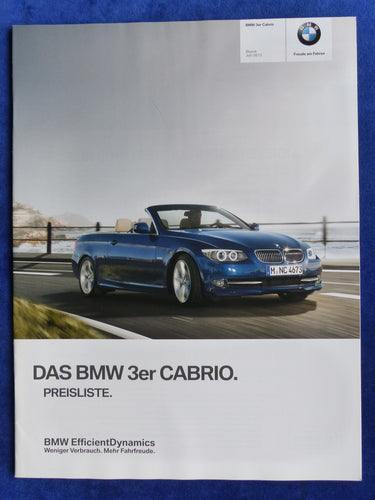 BMW 3er Cabrio 335i Typ E93 - Preisliste MJ 2014 - Prospekt Brochure 07.2013