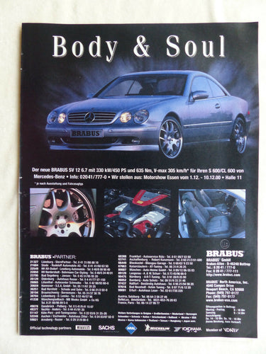 Brabus SV 12 6.7 Mercedes CL600 - Werbeanzeige Reklame Advertisement 2000