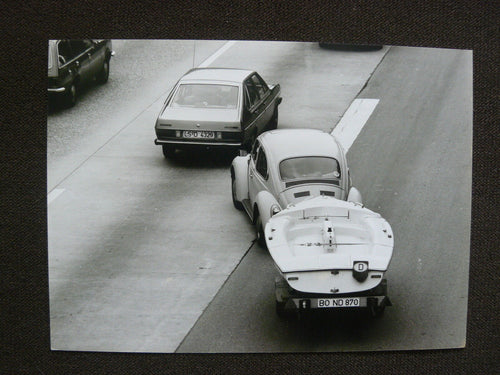 VW Käfer mit Bootsanhänger - Pressefoto Werk-Foto press photo