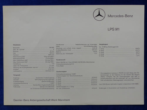 Mercedes-Benz LKW LPS 911 Motor OM 352 - Prospekt Datenblatt Brochure 03.1965