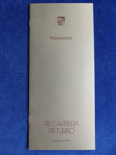 Porsche 911 Carrera 911 Turbo G-Modell - Preisliste - Prospekt Brochure 03.1987