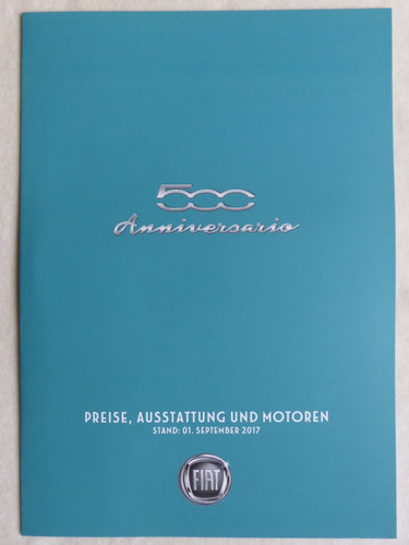 Fiat 500 Anniversario - Preisliste MJ 2018 - Prospekt Brochure 09.2017