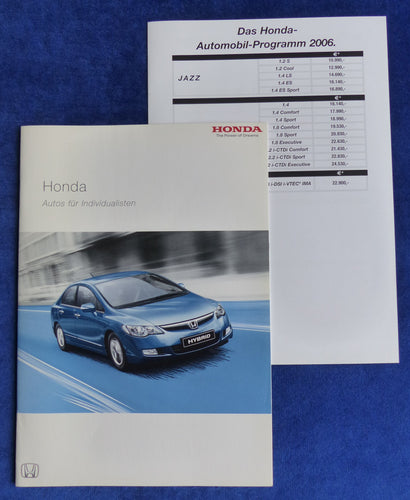 Honda Programm 2006 Civic Accord S2000 - Prospekt Brochure + Preisliste 06.2006