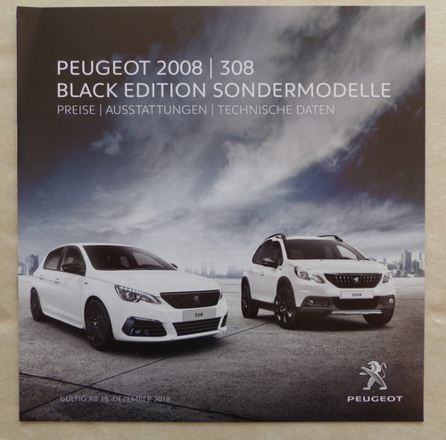 Peugeot 2008 308 Black Edition - Preisliste MJ 2019 - Prospekt Brochure 12.2018