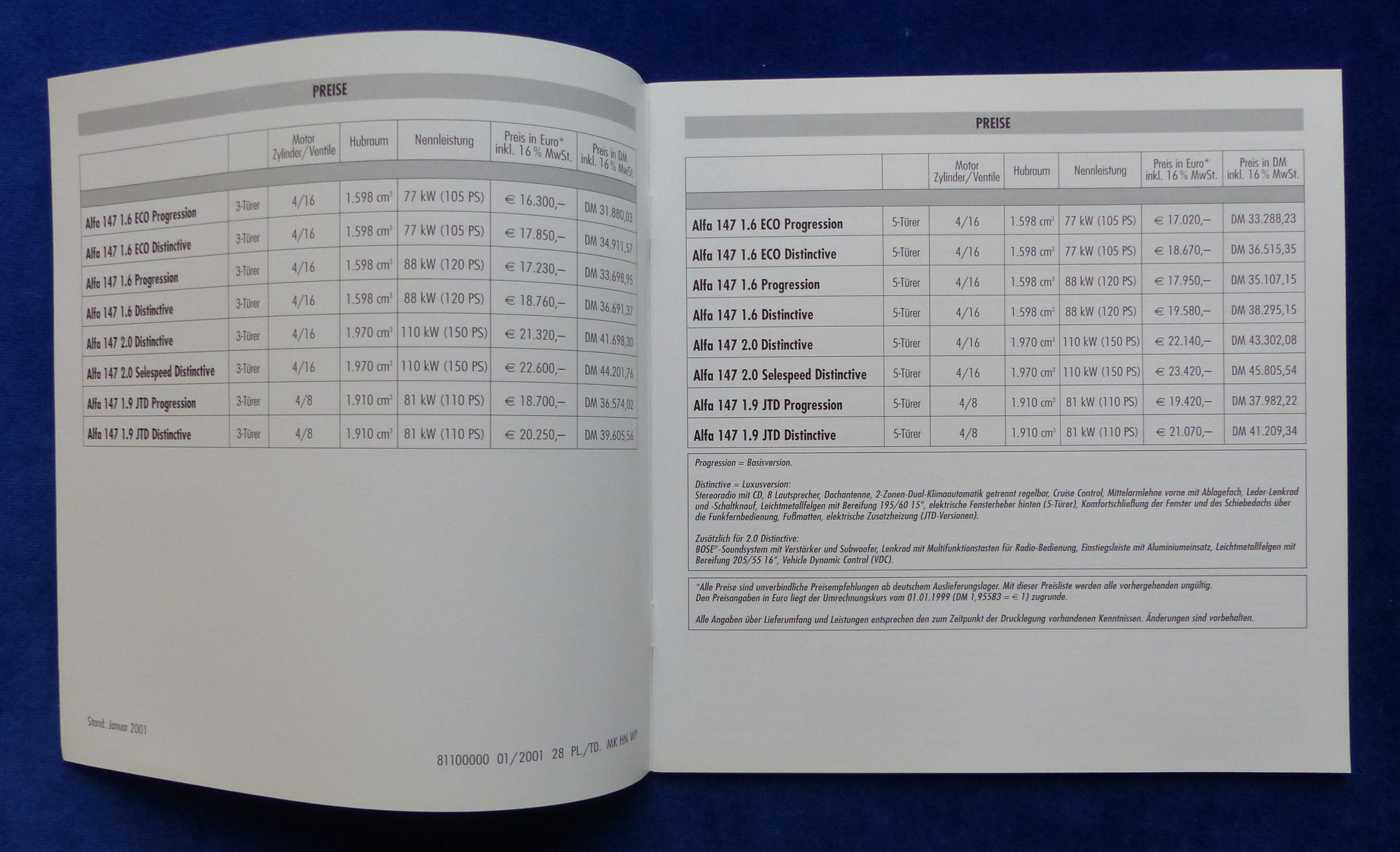 Inhalt / Modelle: siehe Bild 2 - u.a. 147 Progression / Distinctive - Modelljahr 2001
