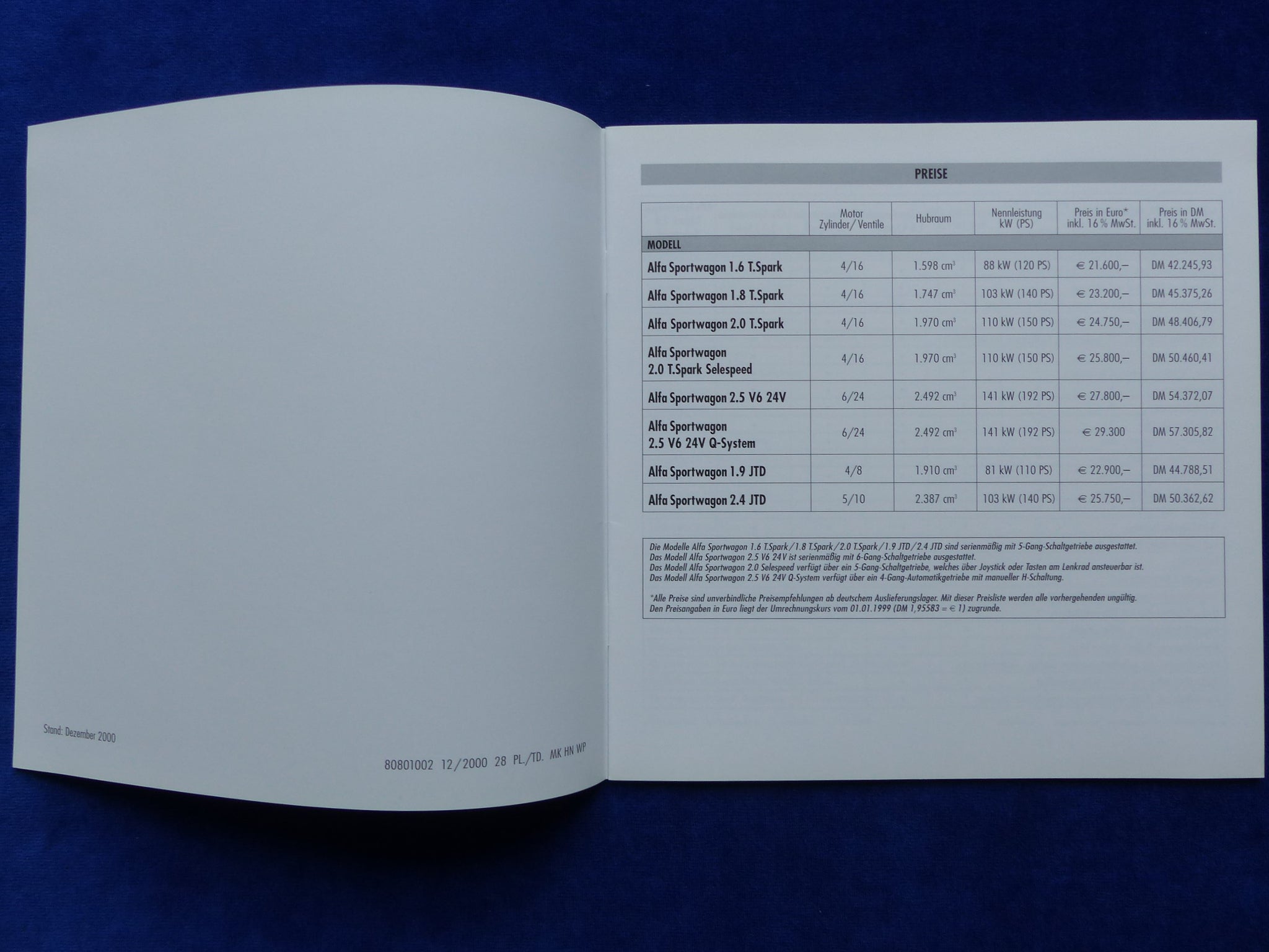Inhalt / Modelle: u.a. 156 Sportwagon 1.6 / 1.8 / 2.0 T.Spark / 2.5 V6 / 2.4 JTD - Modelljahr 2001