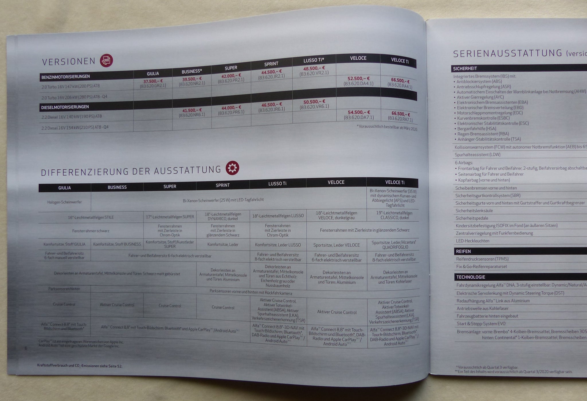 Inhalt / Modelle: u.a. Giulia Basis / Business / Super / Sprint / Lusso Ti / Veloce Ti - Modelljahr 2021