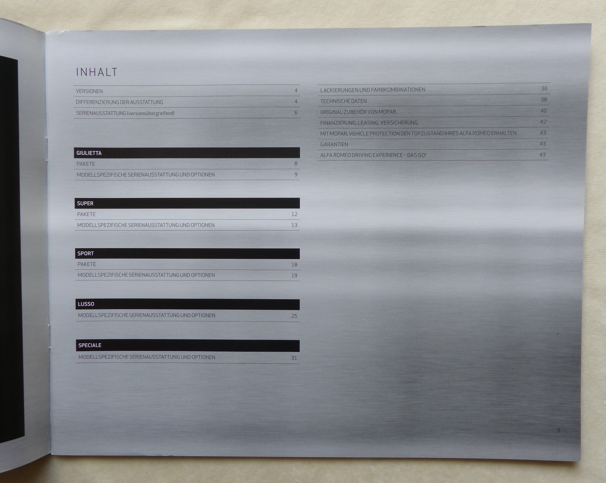 Inhalt / Modelle: u.a. Giulietta Basis / Super / Sport / Lusso / Speciale - Modelljahr 2019