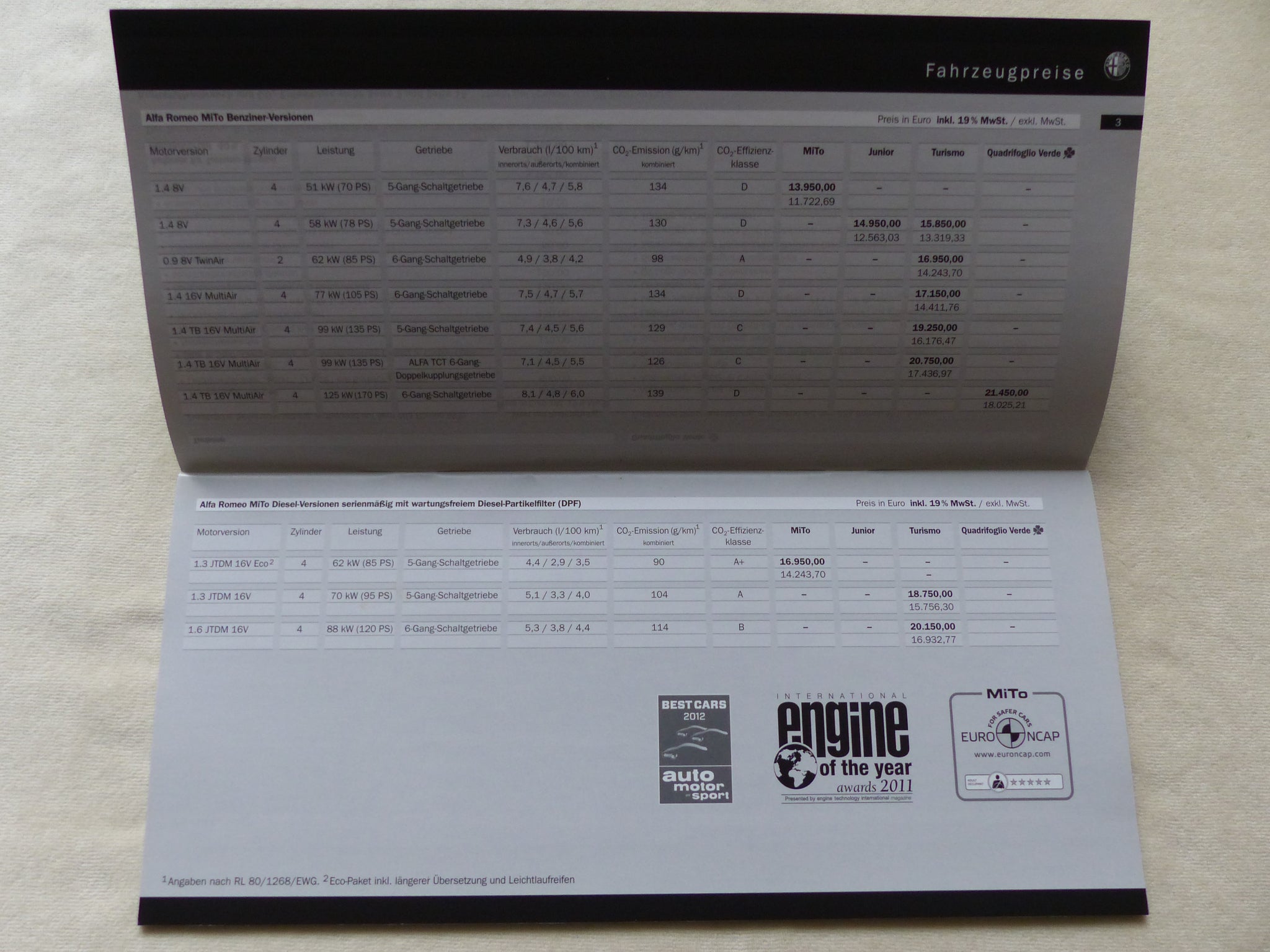 Inhalt / Modelle: u.a. MiTo Junior / MiTo Turismo / MiTo Quadrifoglio Verde - Modelljahr 2013