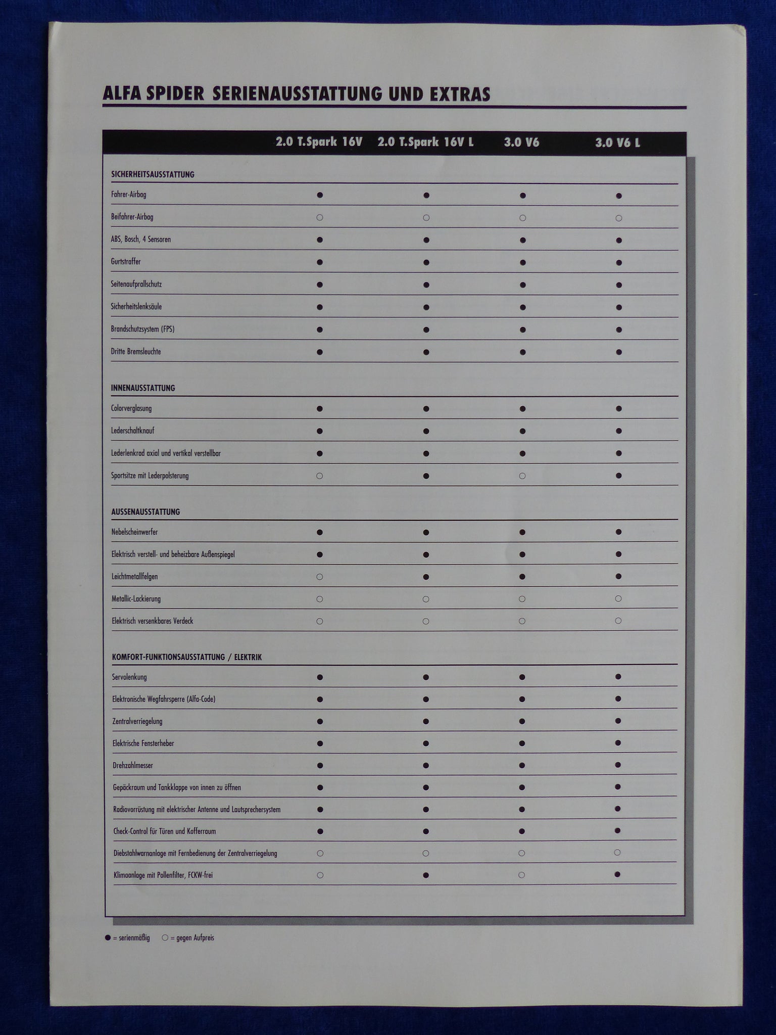 Inhalt / Modelle: u.a. Spider 2.0 T.Spark 16V / 3.0 V6 - Modelljahr 1996