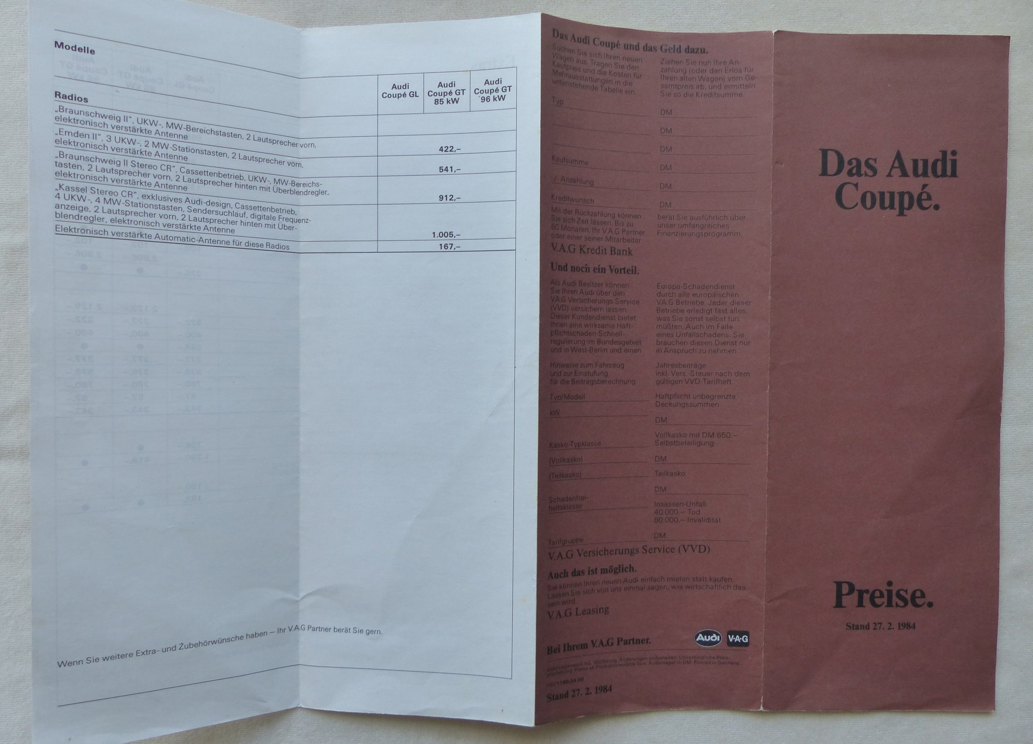 Inhalt / Modelle: u.a. Coupé GL / GT - Modelljahr 1984