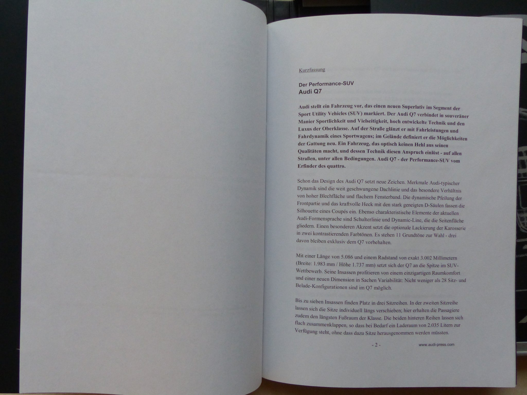 Inhalt / Modelle: siehe Bild 4 - u.a. Q7 V6 TDI / V8 FSI quattro - Modelljahr 2006