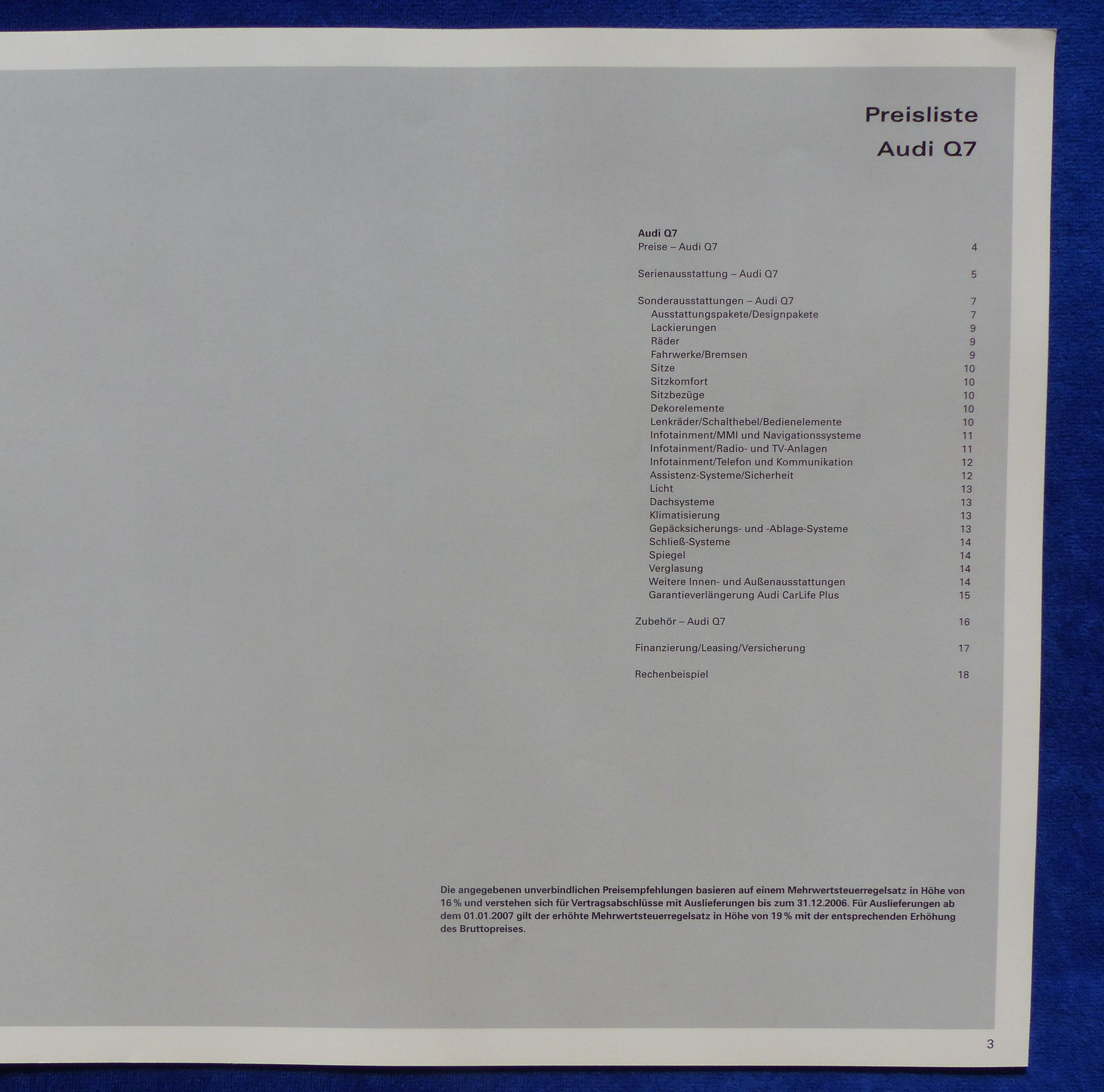 Inhalt / Modelle: siehe Bild 2 - u.a. Q7 3.6 FSI / 4.2 FSI V8 / Q7 3.0 TDI V6 - Modelljahr 2007