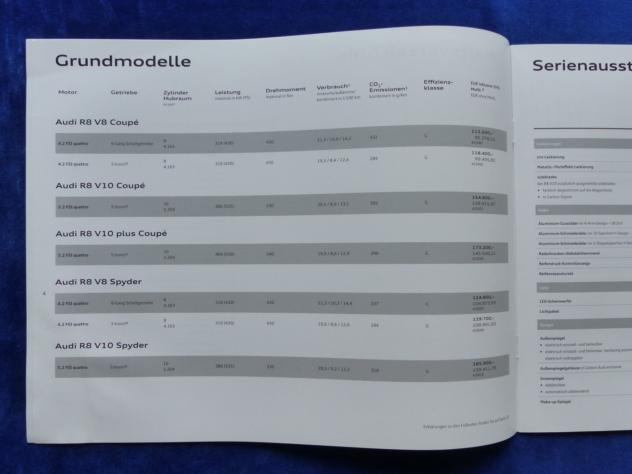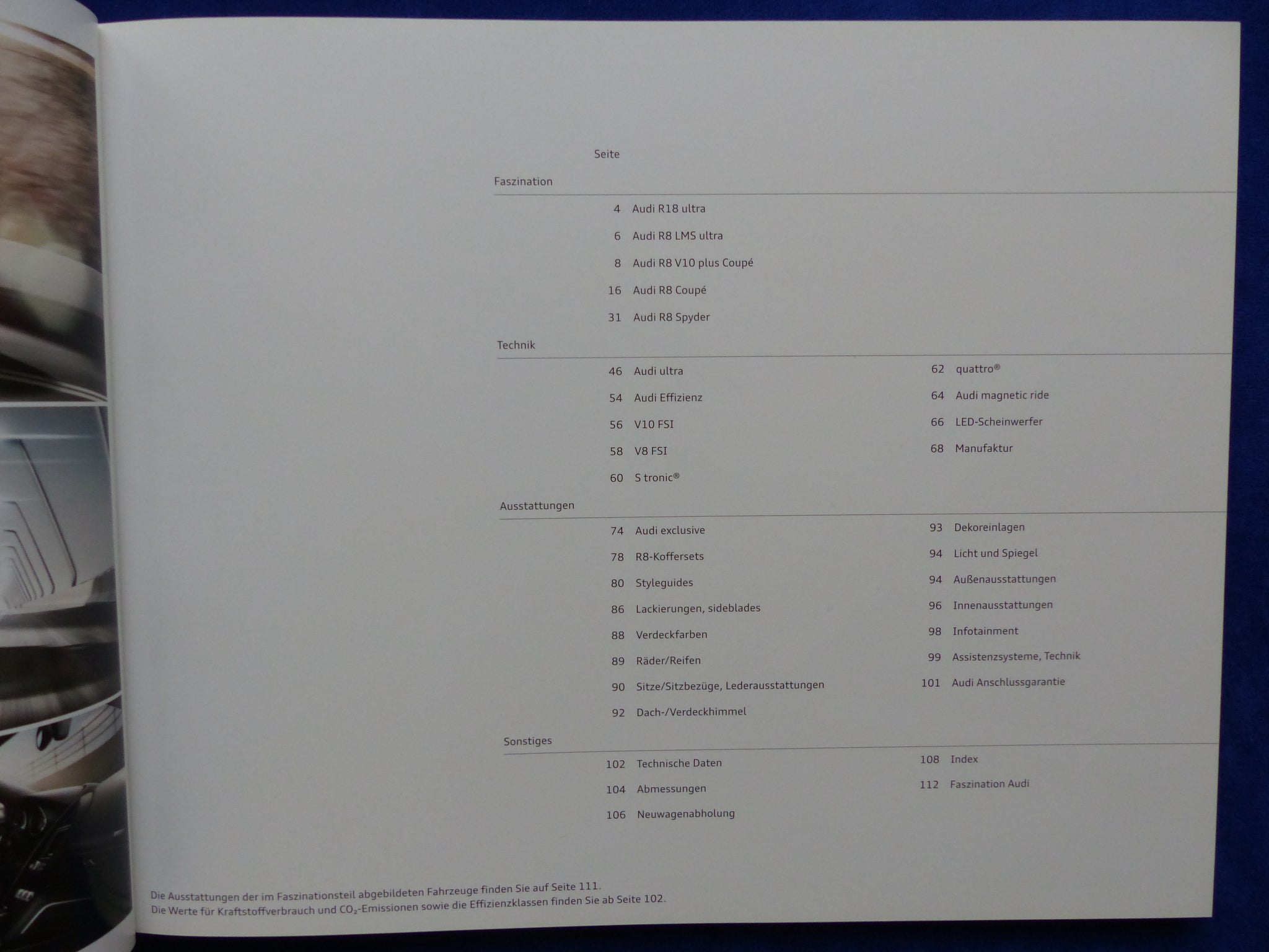 Inhalt / Modelle: siehe Bild 2 - u.a. R8 Coupé / Spyder V8 / V10 - Modelljahr 2013