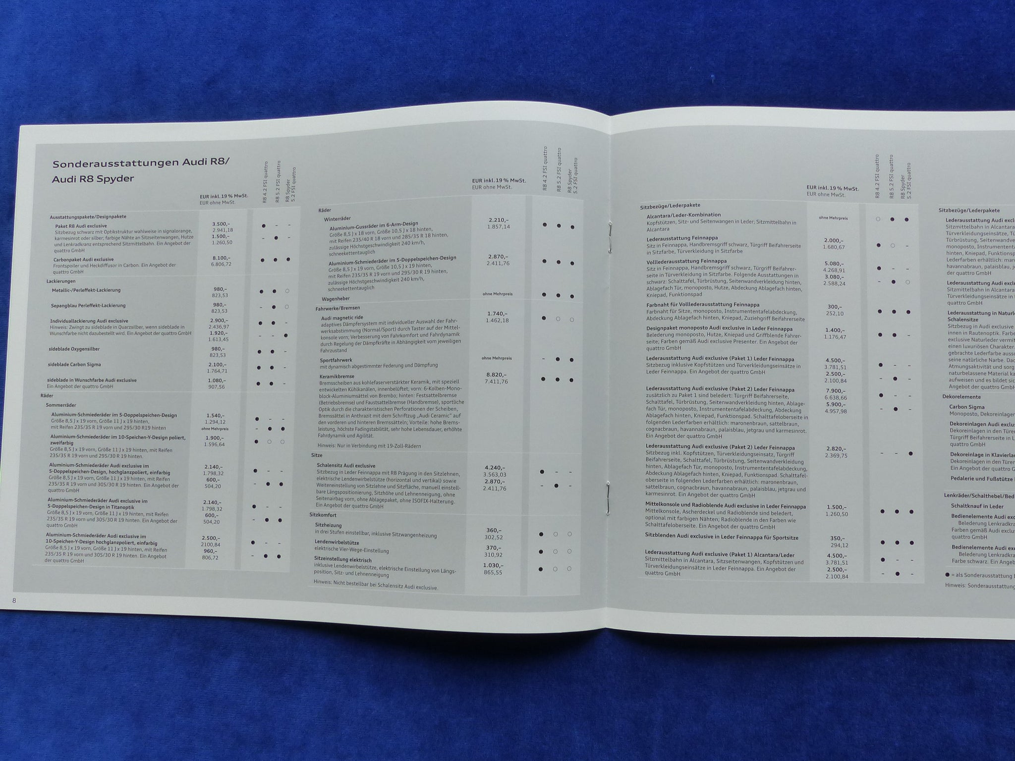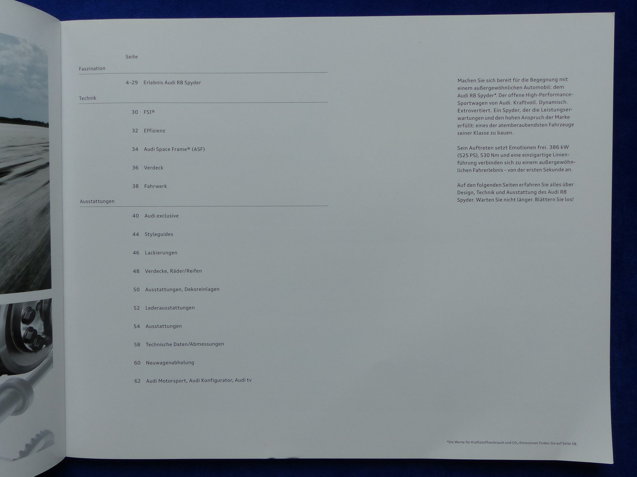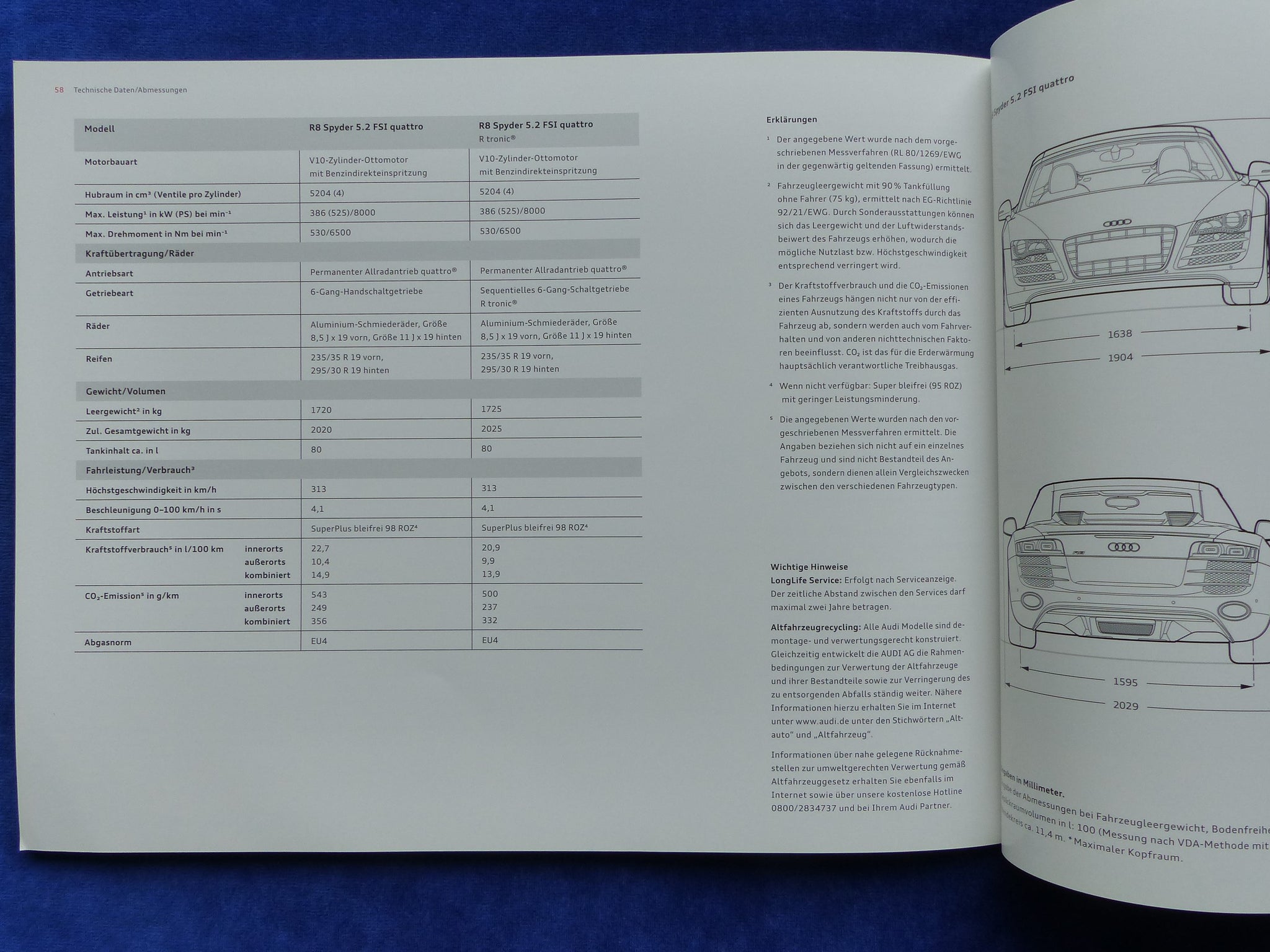Inhalt / Modelle: siehe Bild 2 - R8 Spyder 4.2 FSI / 5.2 FSI quattro - Modelljahr 2010