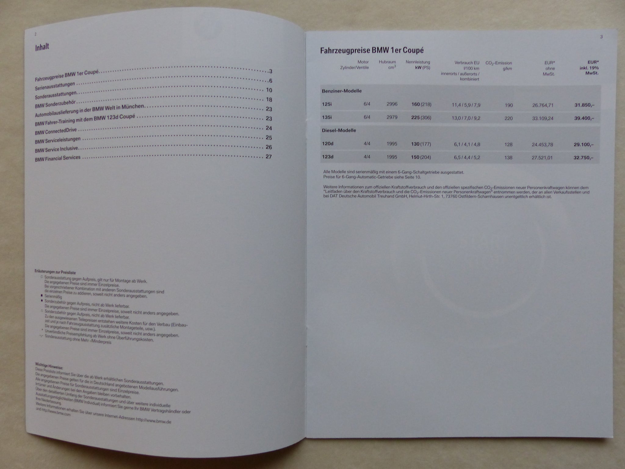 Inhalt / Modelle: siehe Bild 2 - u.a. 1er Coupé 125i / 135i / 120d / 123d - Modelljahr 2009