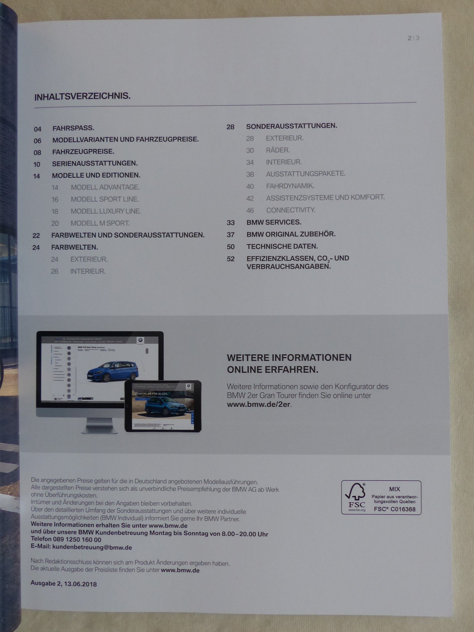 Inhalt / Modelle: siehe Bild 2 - u.a. 2er Modell Advantage / Sport Line / Luxury Line / M Sport - Modelljahr 2019