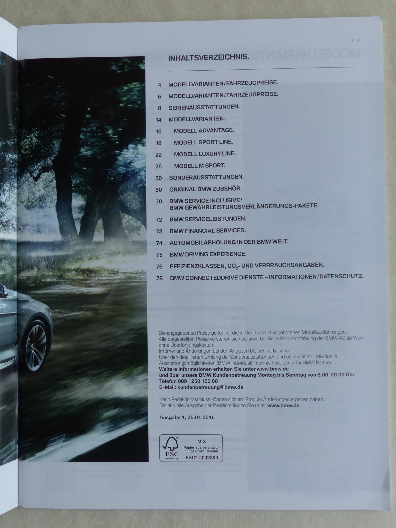 Inhalt / Modelle: siehe Bild 2 - u.a. 3er Modell Advantage / Sport Line / Luxury Line / M Sport - Modelljahr 2016