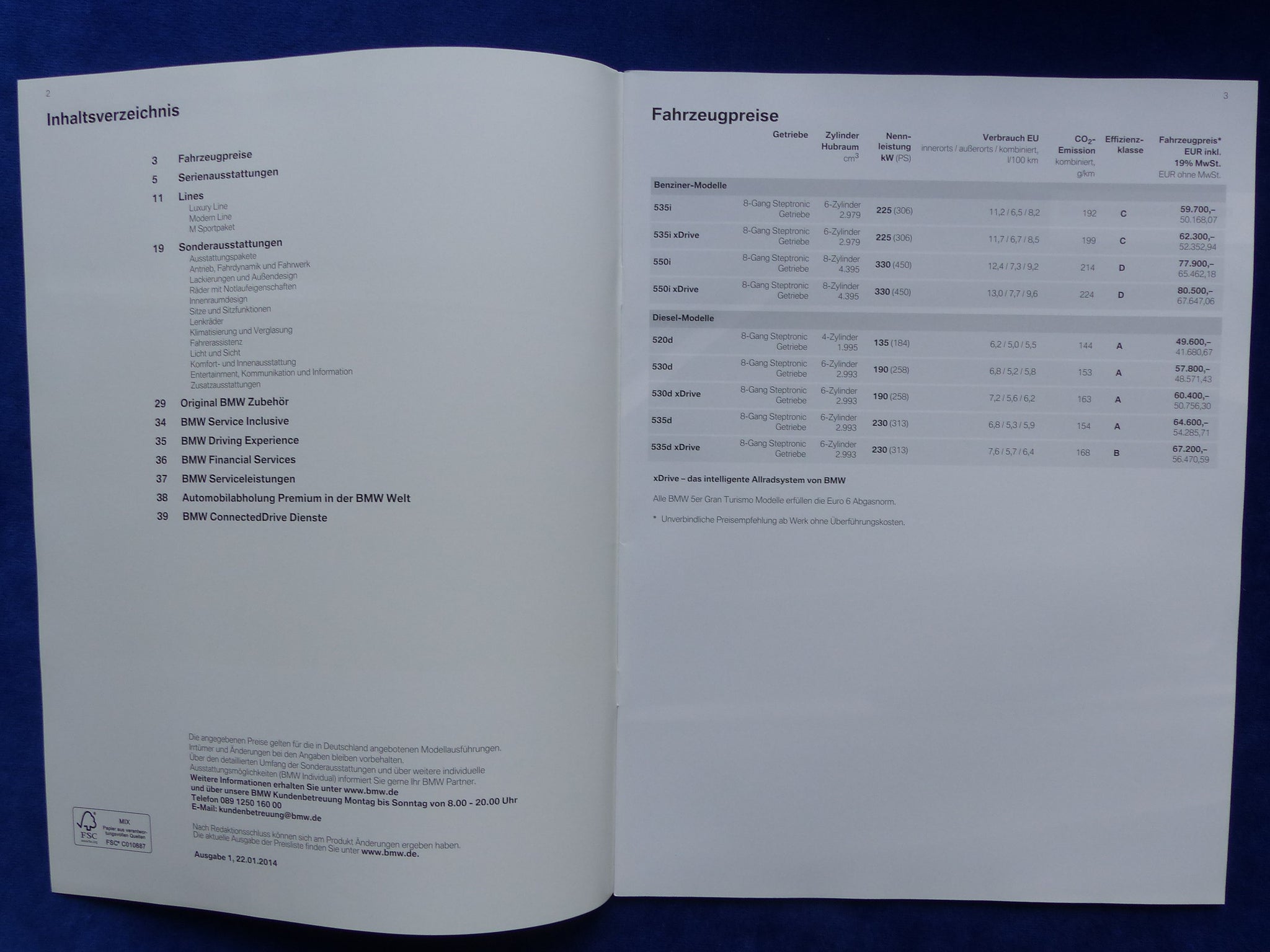Inhalt / Modelle: siehe Bild 2 - u.a. 5er GT Luxury Line / Modern Line / M Sportpaket - Modelljahr 2014