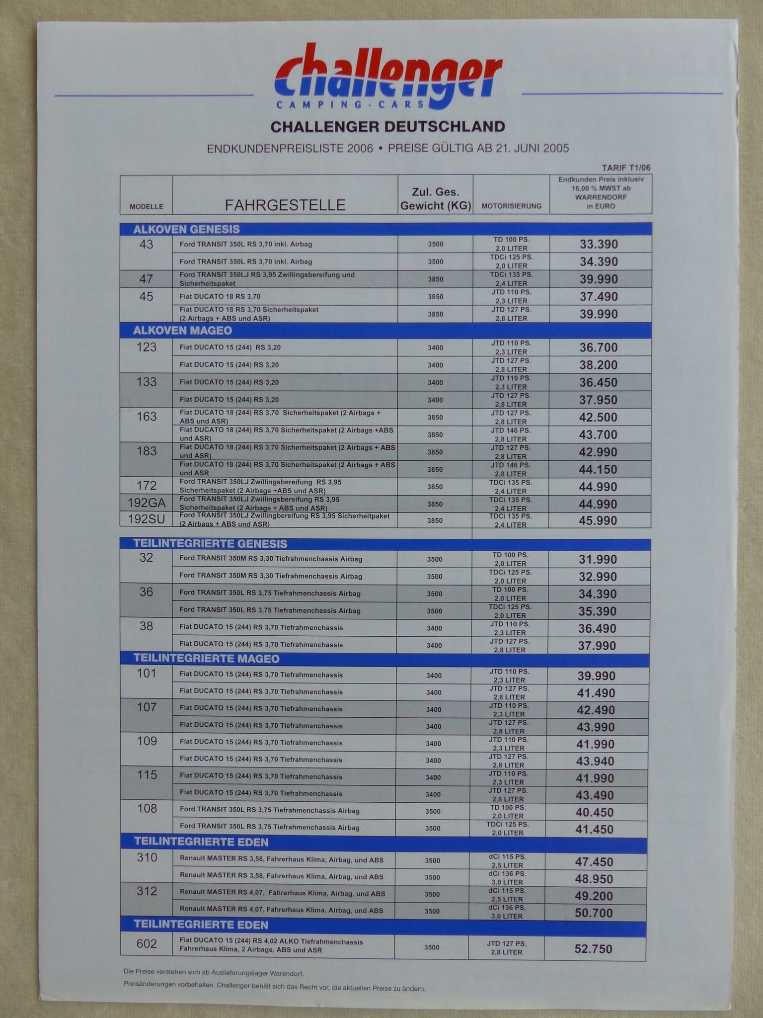 Inhalt / Modelle: Alkoven & Teilintegrierte - u.a. Serie Genesis / Mageo / Eden