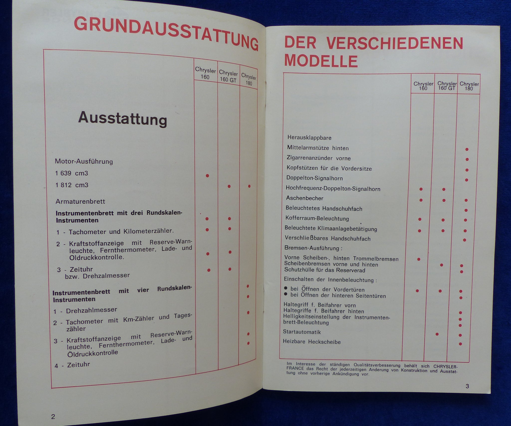 Modelle: u.a. Chrysler 160 / 160 GT / 180 - Modelljahr 1972