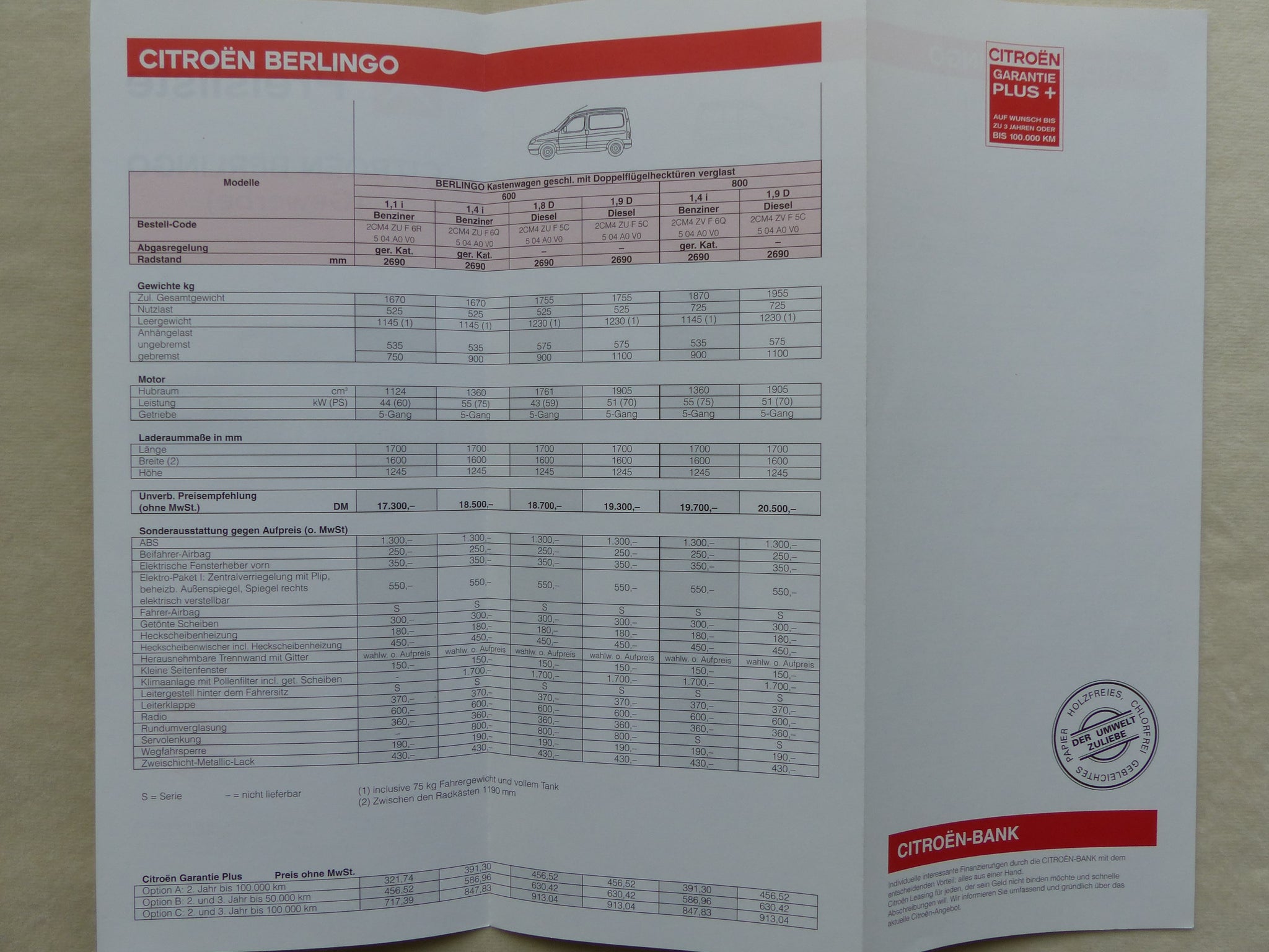 Inhalt / Modelle: u.a. Berlingo Kastenwagen / Kombi - Modelljahr 1997