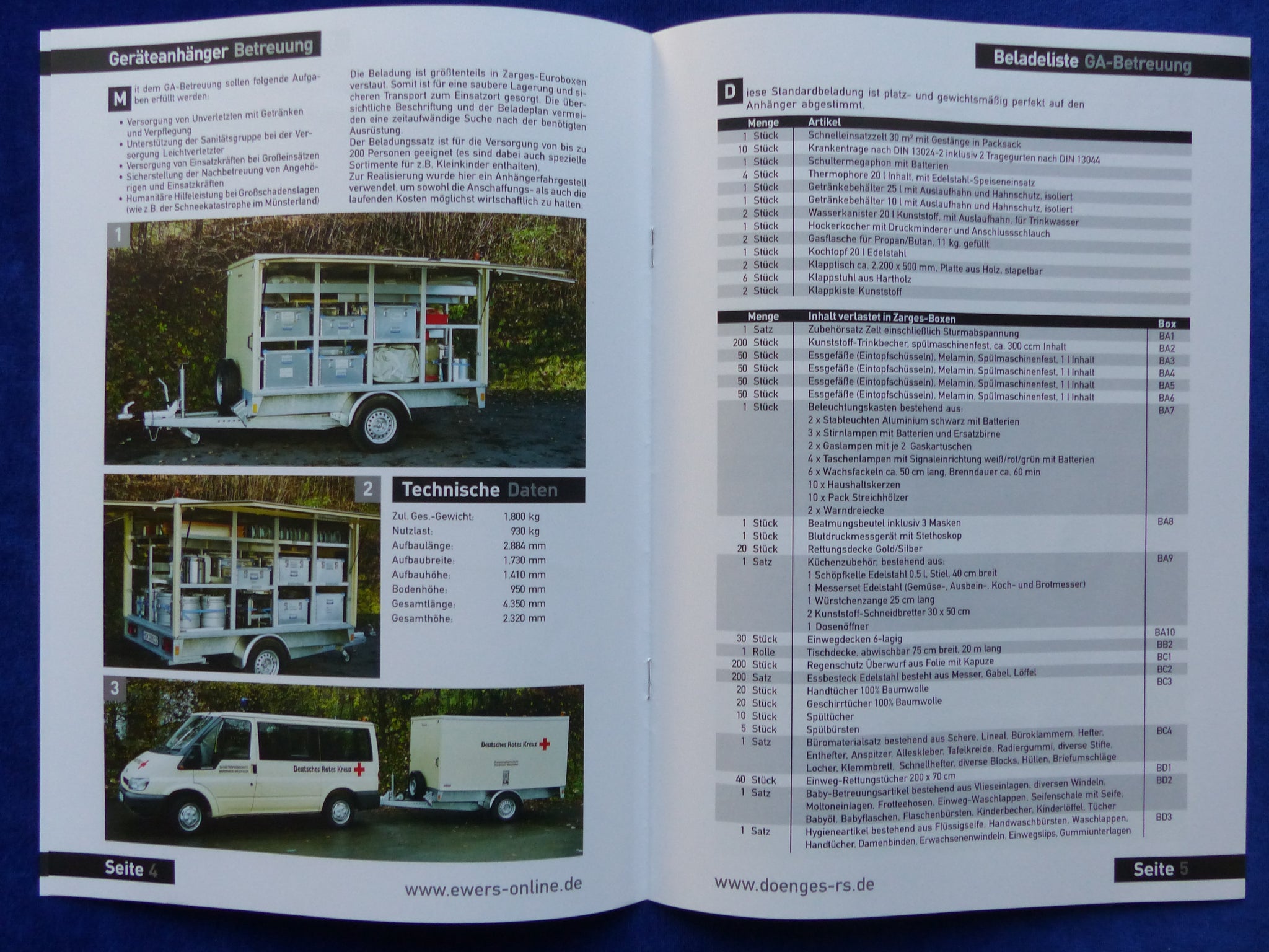 Inhalt / Modelle: u.a. Gerätewagen San-Dienst, Geräteanhänger Betreuung, Geräteanhänger Technik