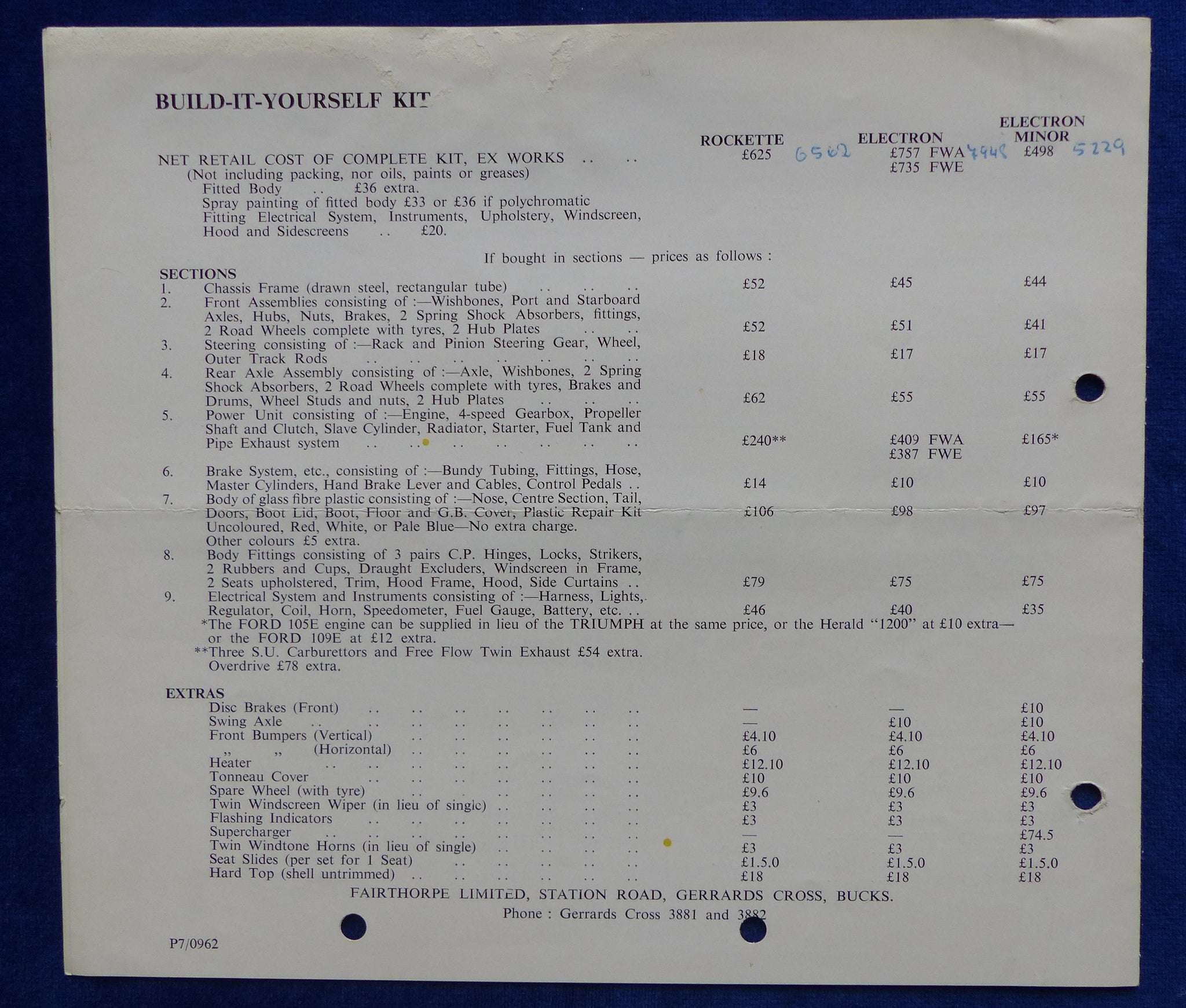 Inhalt / Modelle: u.a. Technische Daten & Preise von Rockette / Electron / Electron Minor - Modelljahr 1963