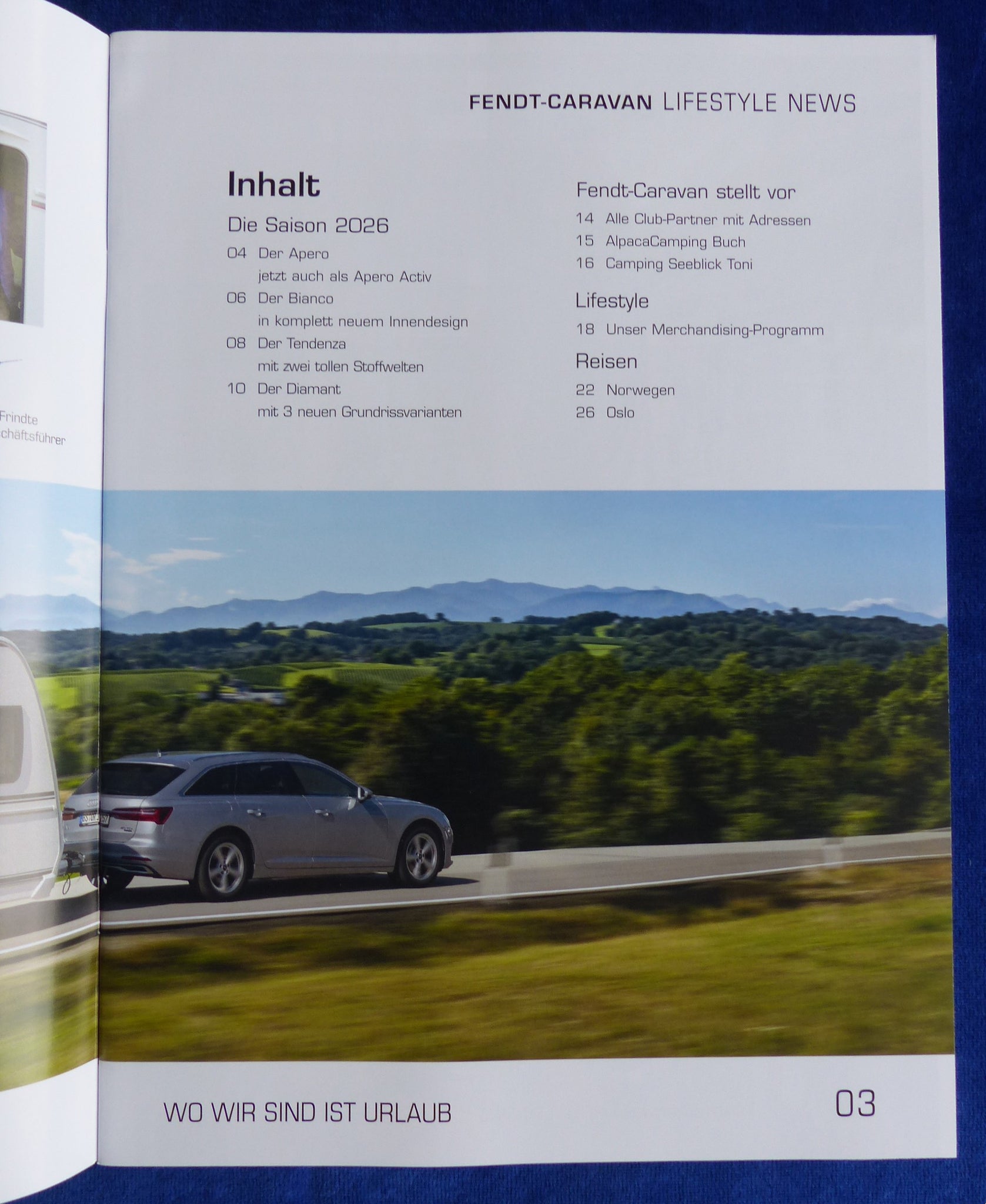 Inhalt / Modelle: siehe Bild 2 - u.a. Wohnwagen-Modelle 2026 Apero / Bianco / Tendenza / Diamant