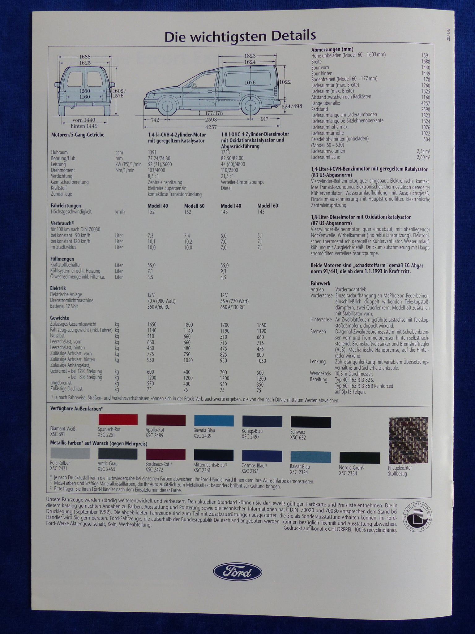 Inhalt / Modelle: u.a. Escort Express Modell 40 / 60 - Modelljahr 1993