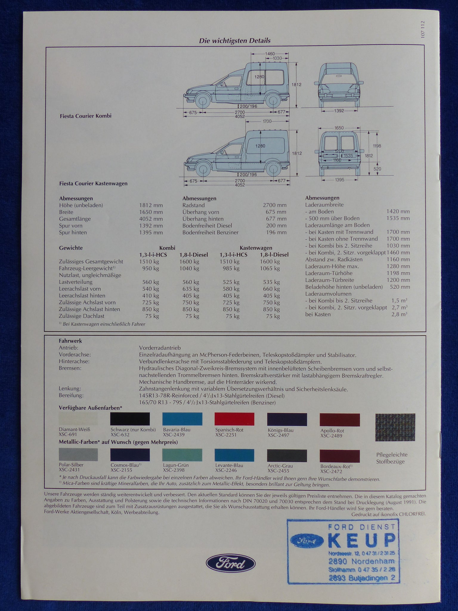 Inhalt / Modelle: Fiesta Courier Kombi & Kastenwagen - Modelljahr 1992