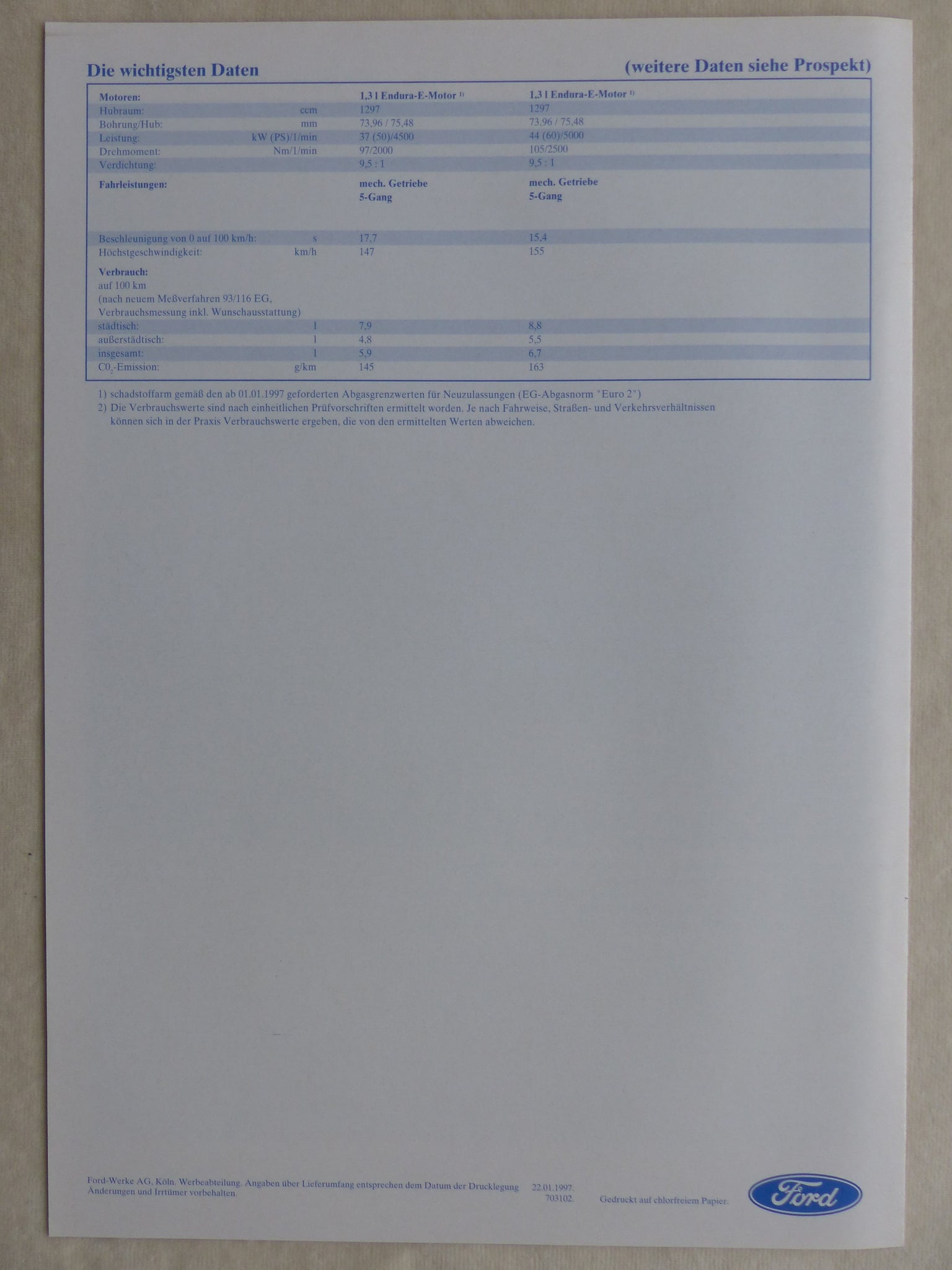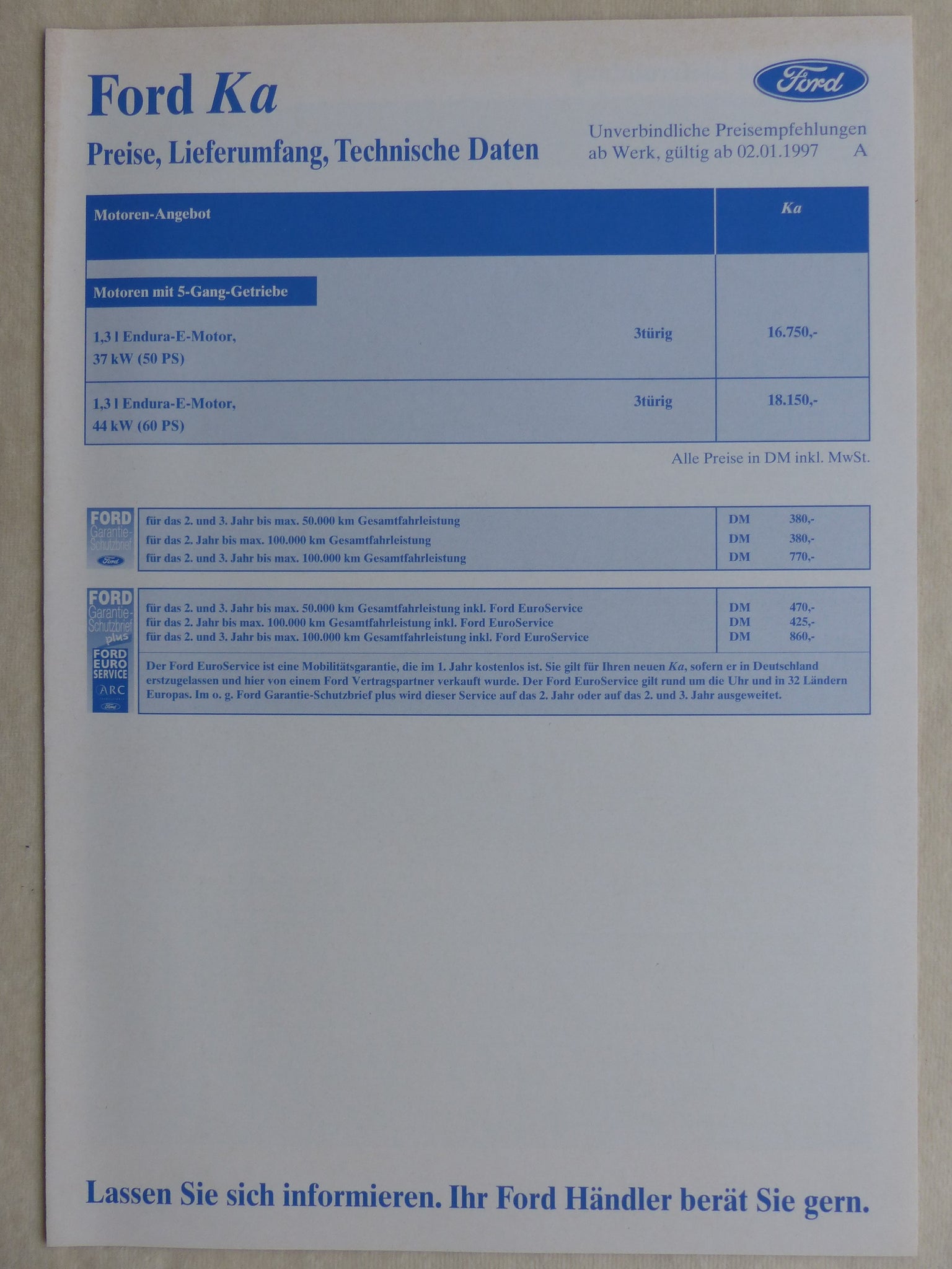 Inhalt / Modelle: u.a. Ka mit 50 PS / 60 PS - Modelljahr 1997