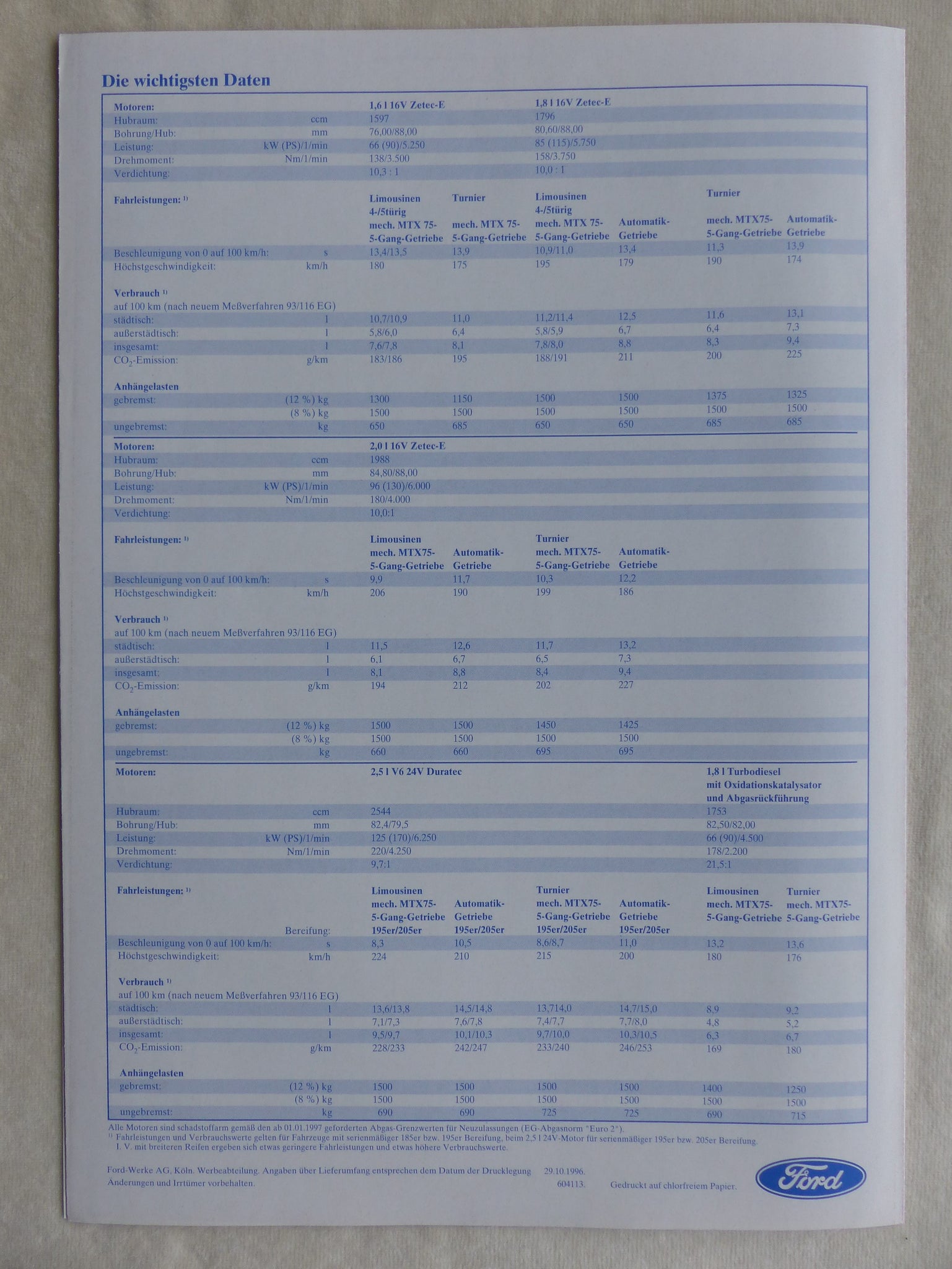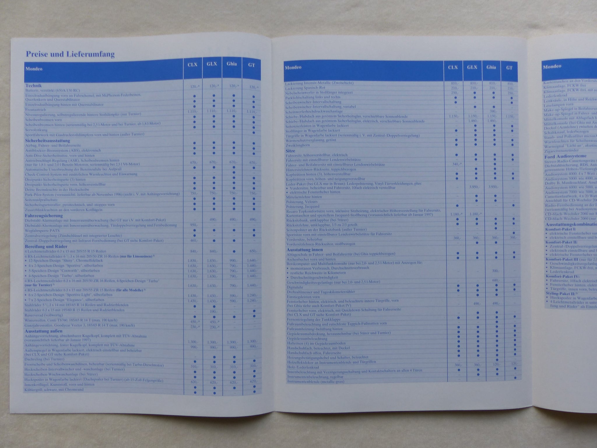 Inhalt / Modelle: siehe Bild 2 - u.a. Mondeo CLX / GLX / Ghia / GT - Modelljahr 1997
