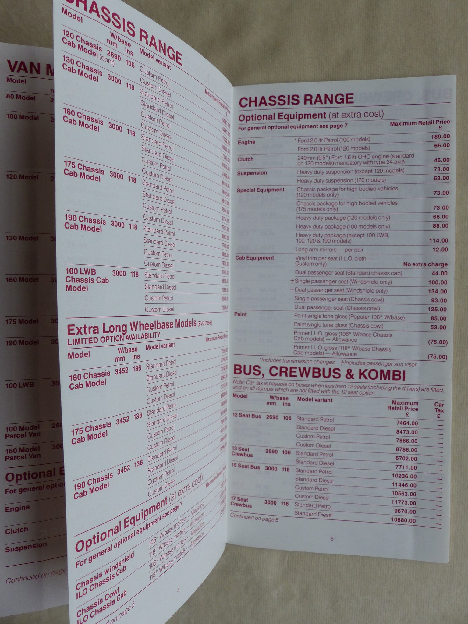 Inhalt / Modelle: u.a. Transit Van Models, Chassis Range, Bus, Kombi - Modelljahr 1986