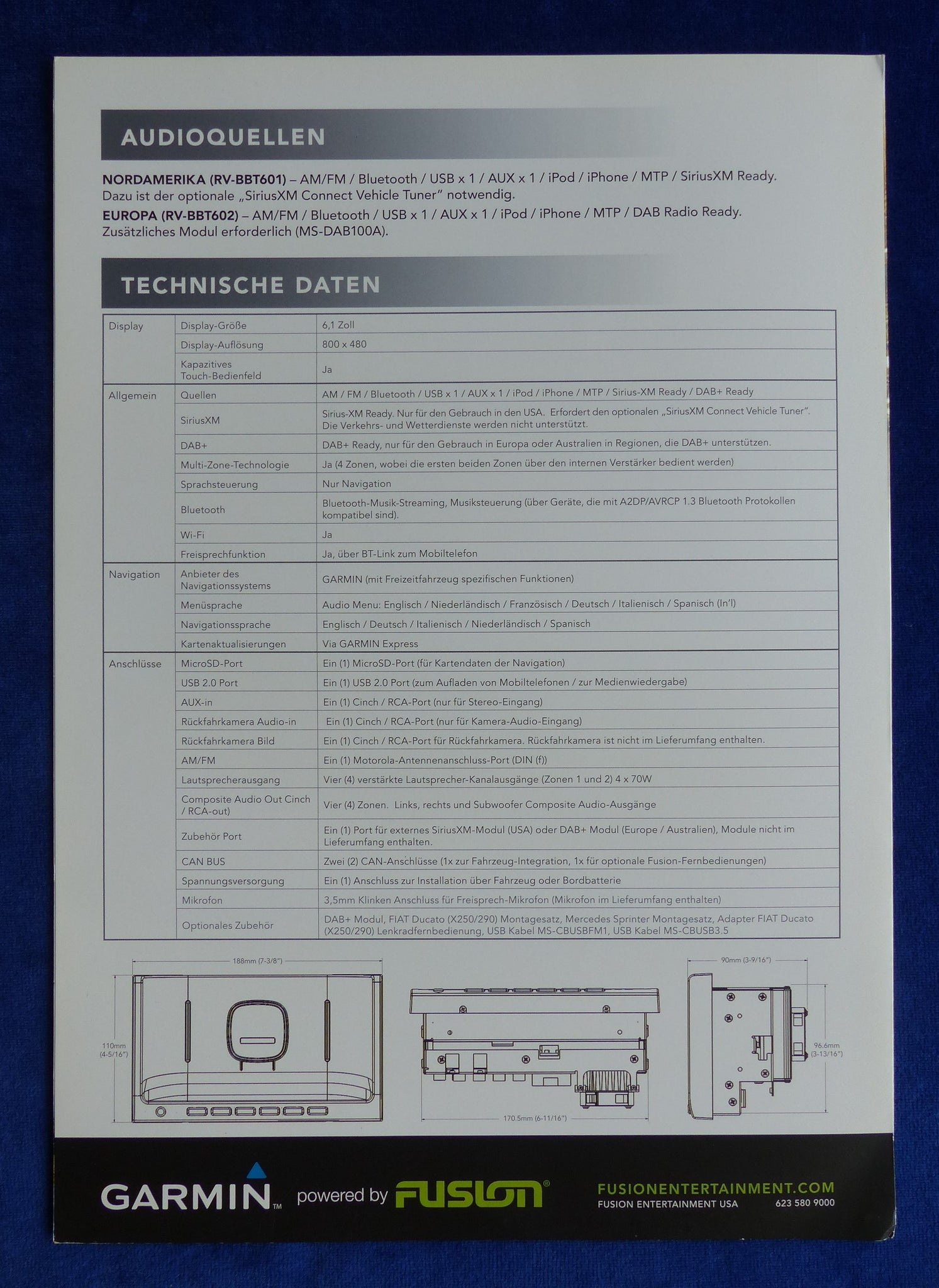 Inhalt / Modelle: u.a. Garmin RV-BBT601