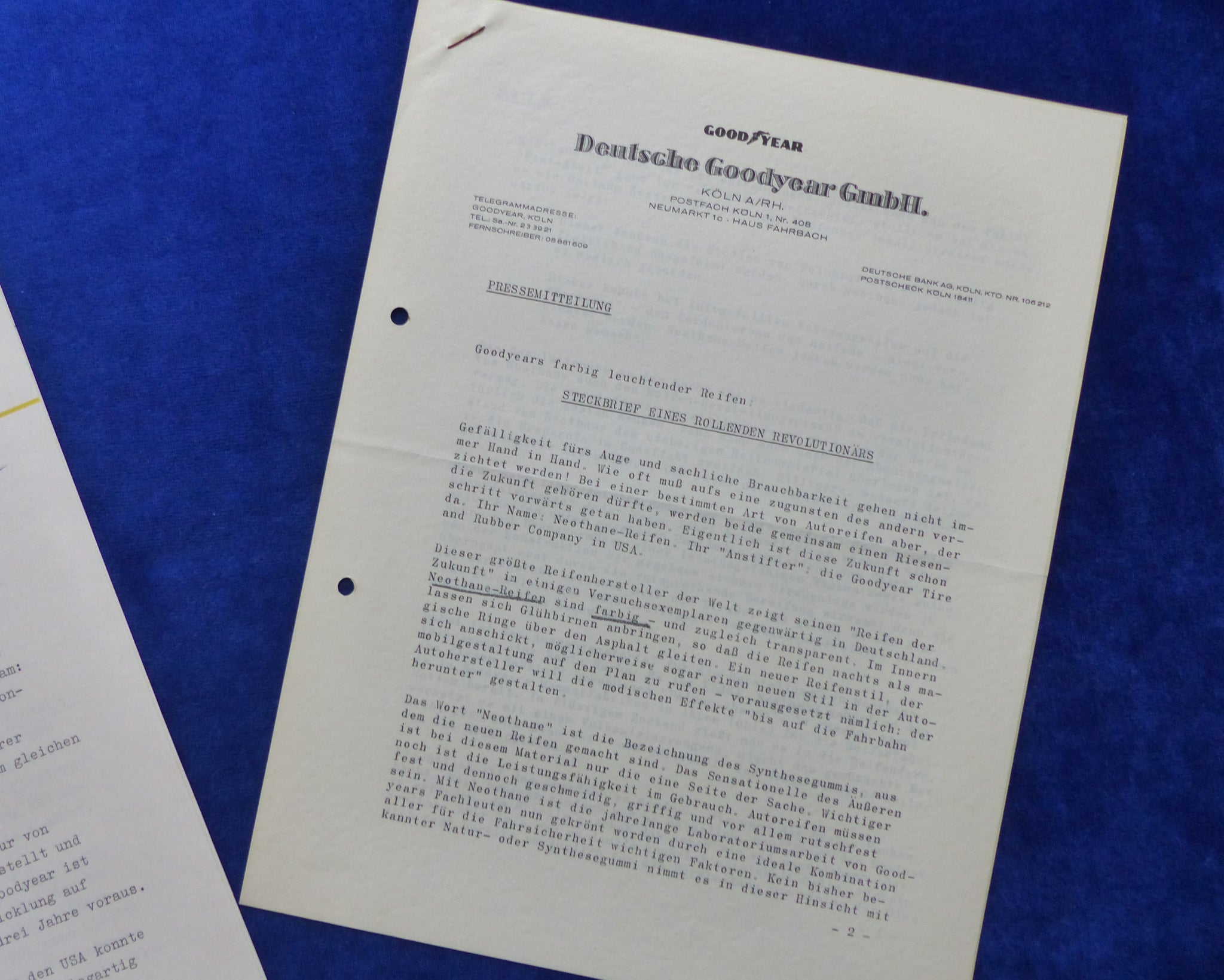 Inhalt / Modelle: u.a. Polyester-Reifen / Zweilagen-Reifen / farbige Neothane-Reifen