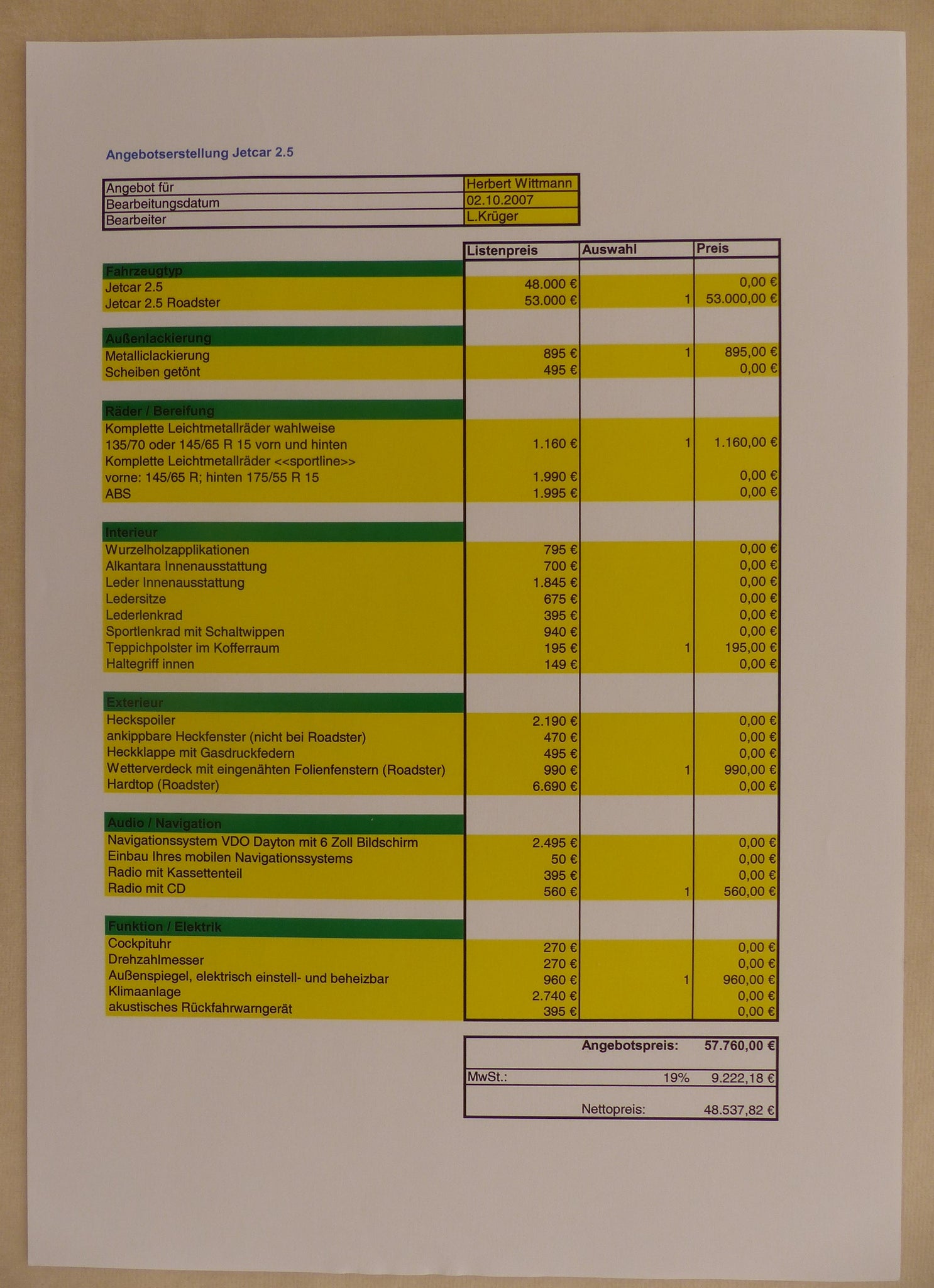 inklusive Preisliste 1-seitig, 10.2007