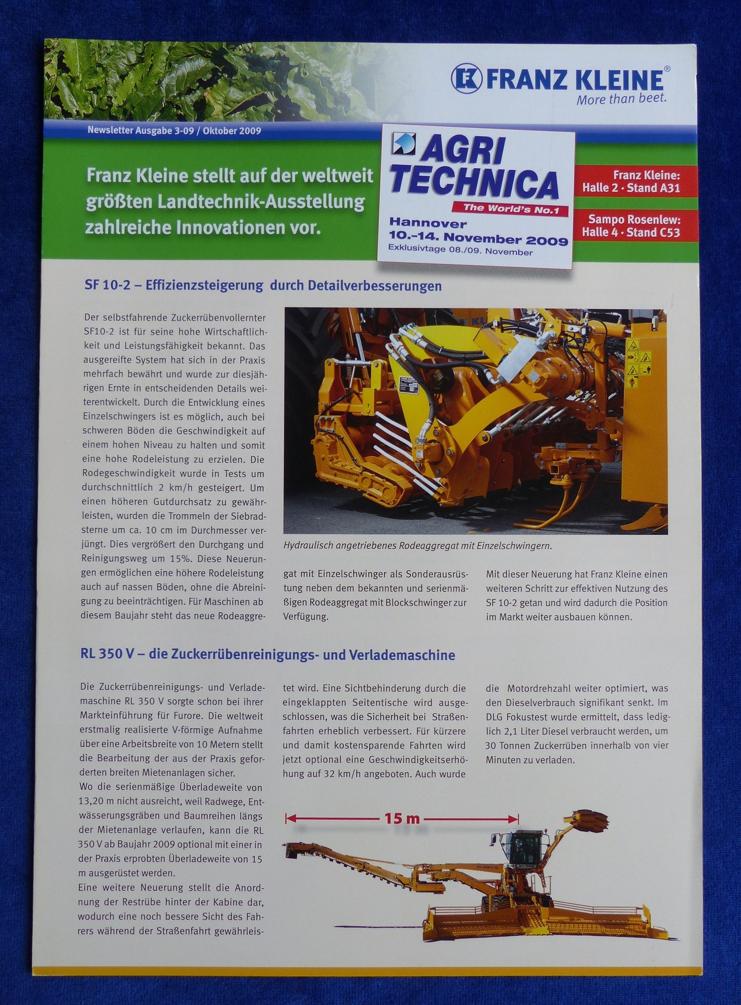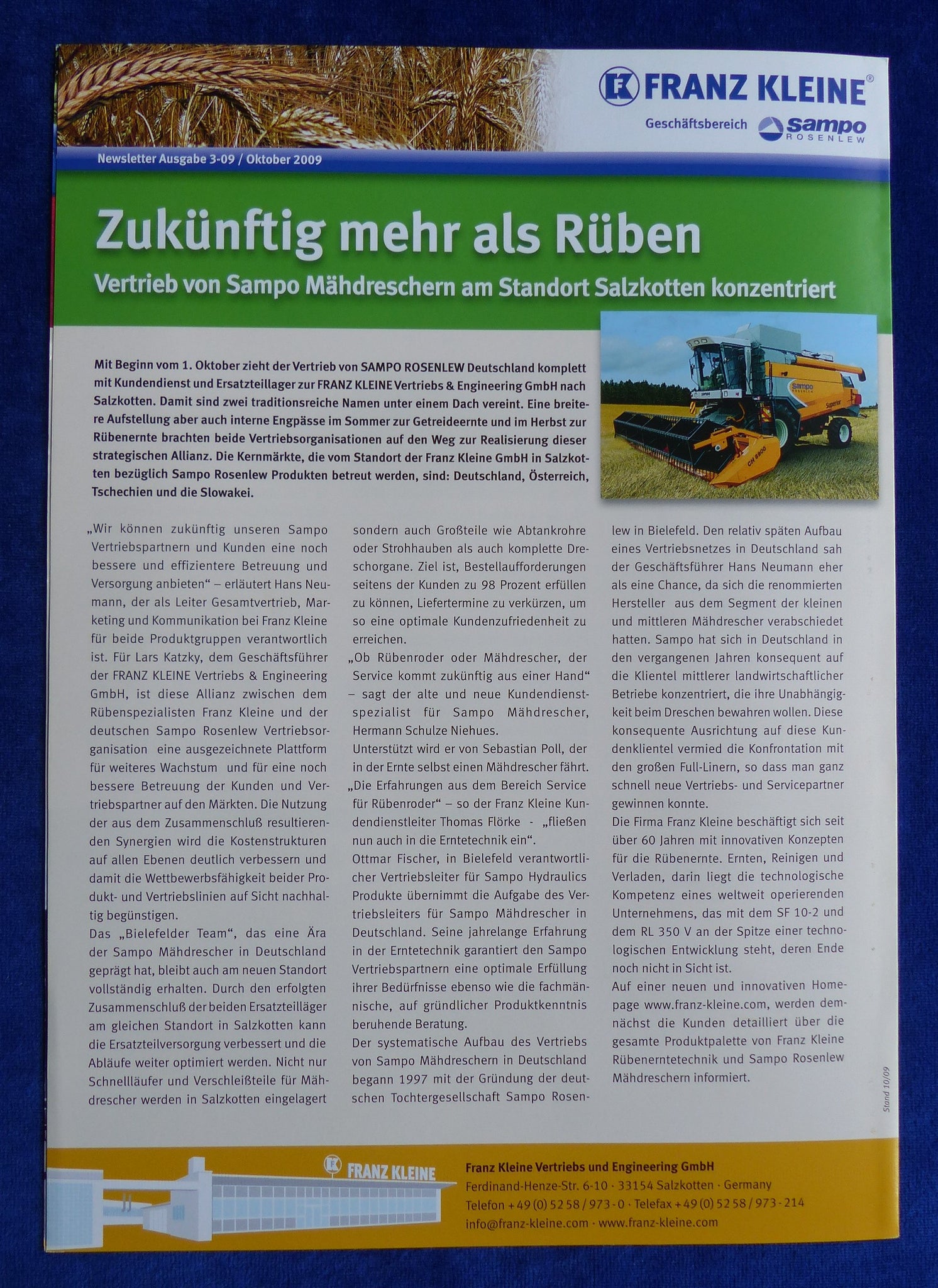 Inhalt / Modelle: u.a. Franz Kleine auf der Agri Technica 2009, Sampo Mähdrescher