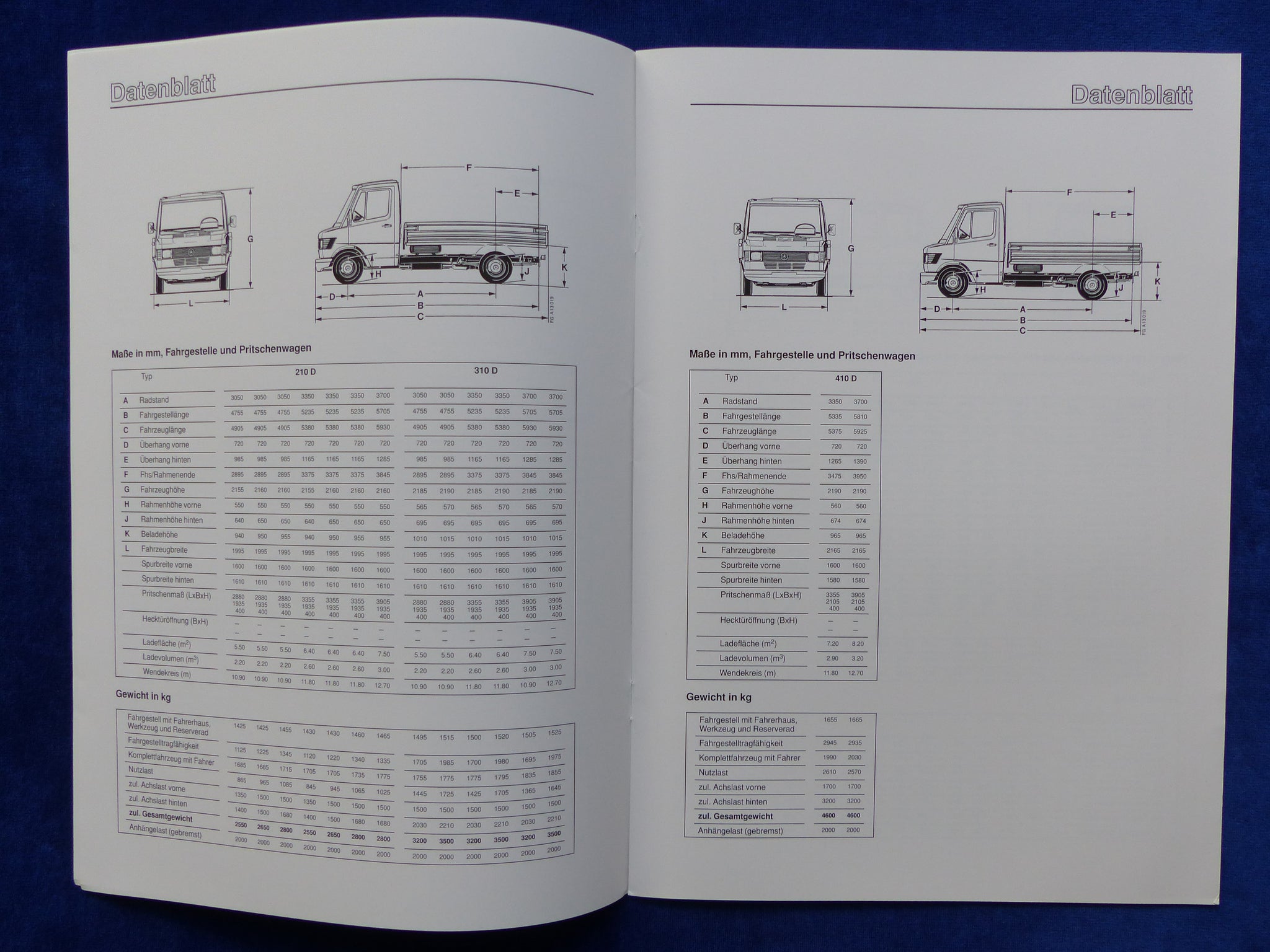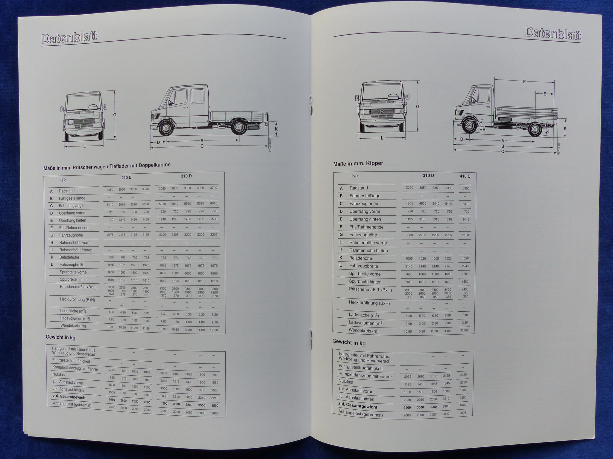 Inhalt / Modelle: Technische Daten Pritschenwagen / Kastenwagen / Kombi / Kipper - Modelljahr 1994