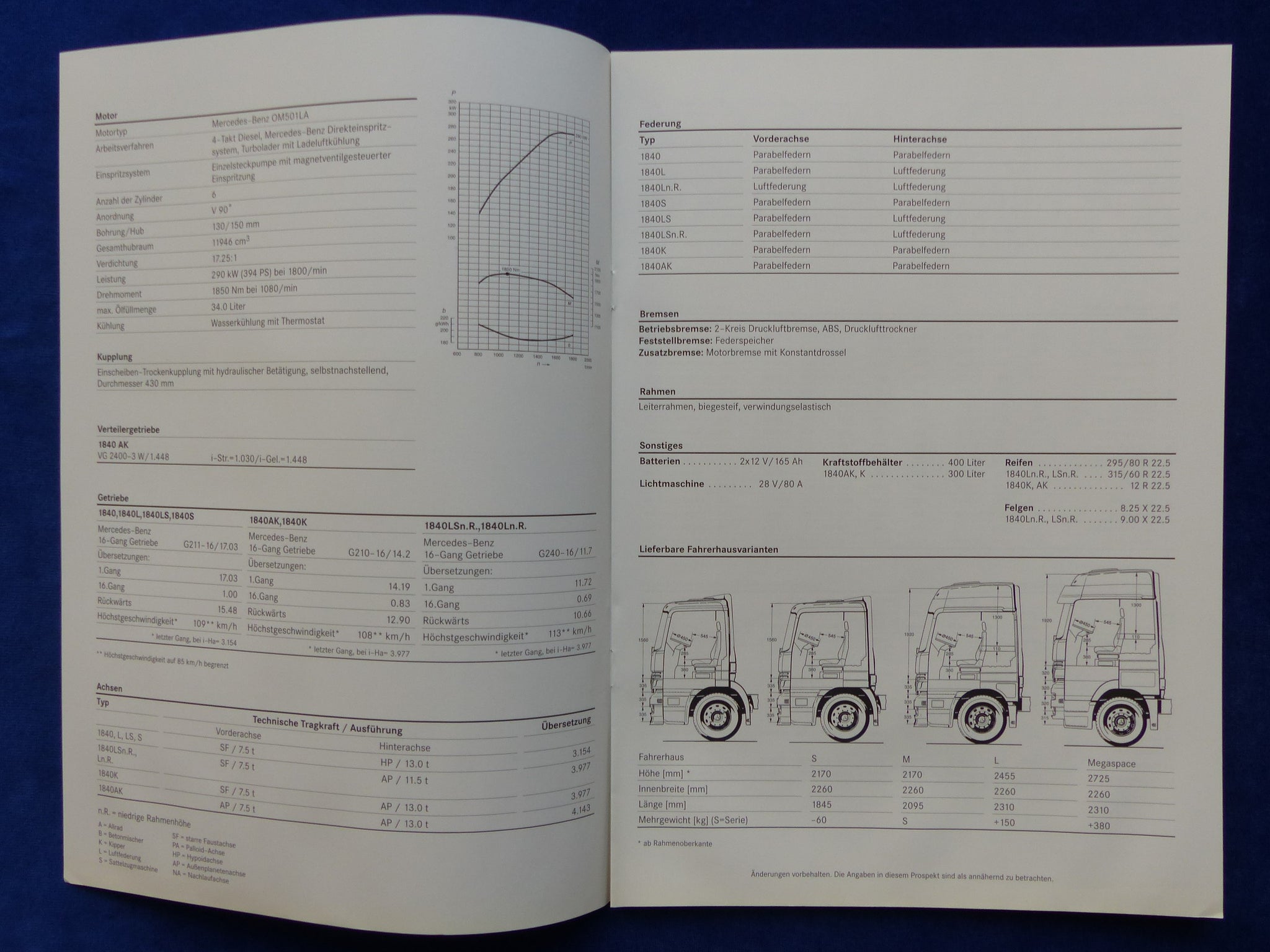 Inhalt / Modelle: Technische Daten Actros 1840 / L / S / LS / K / AK