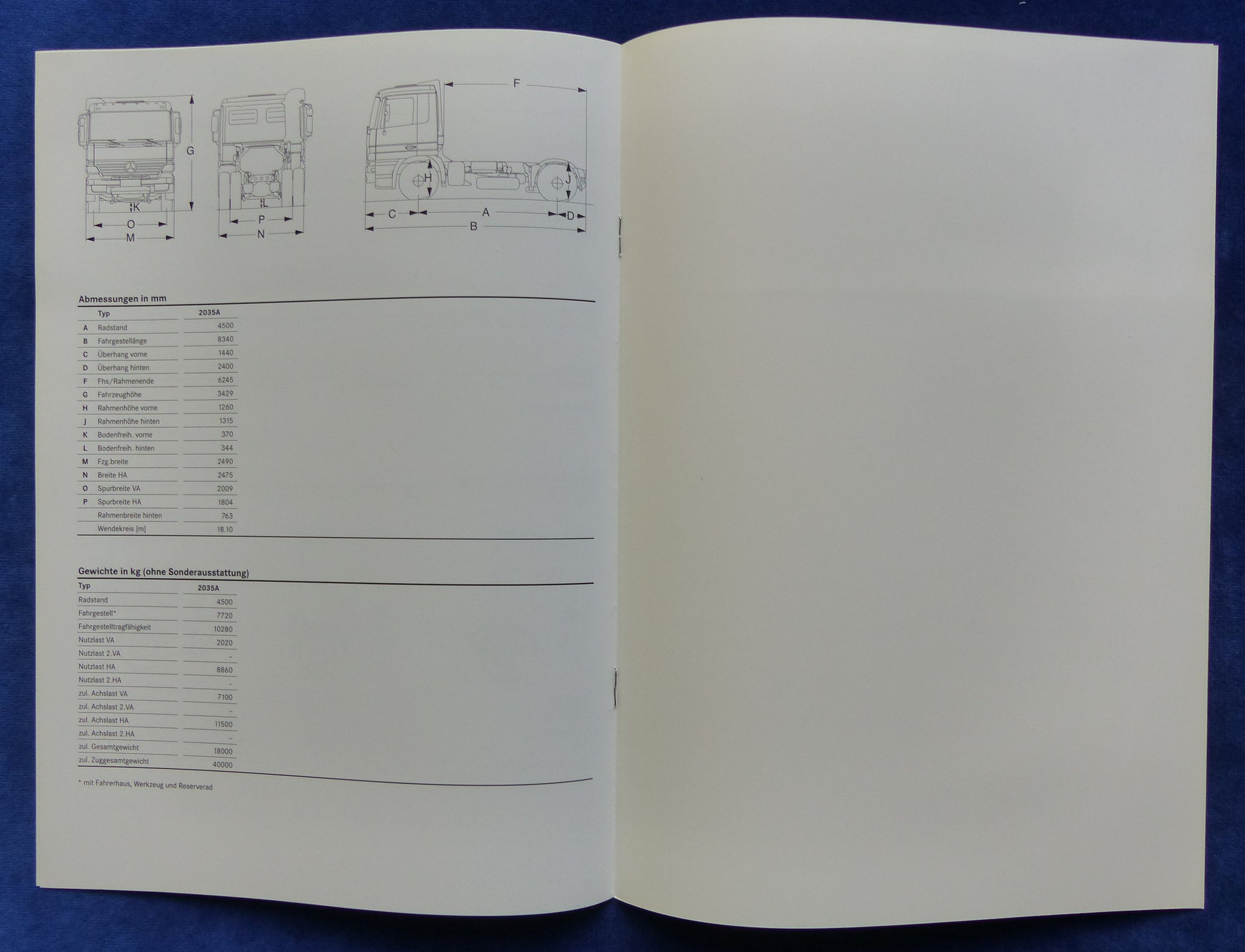 Inhalt / Modelle: technische Daten Actros 2035 - Modelljahr 1999