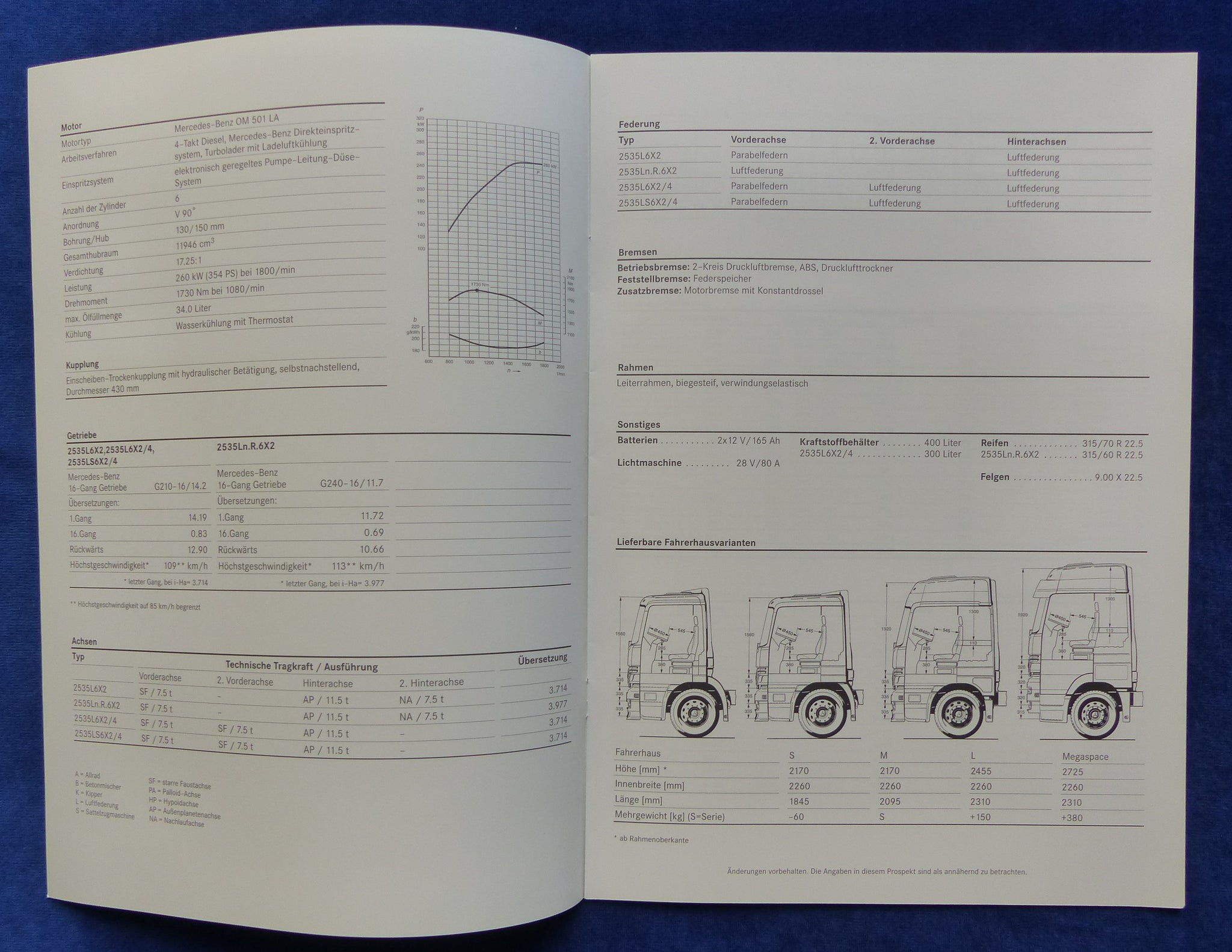 Inhalt / Modelle: Technische Daten Actros 2535 - Modelljahr 1998