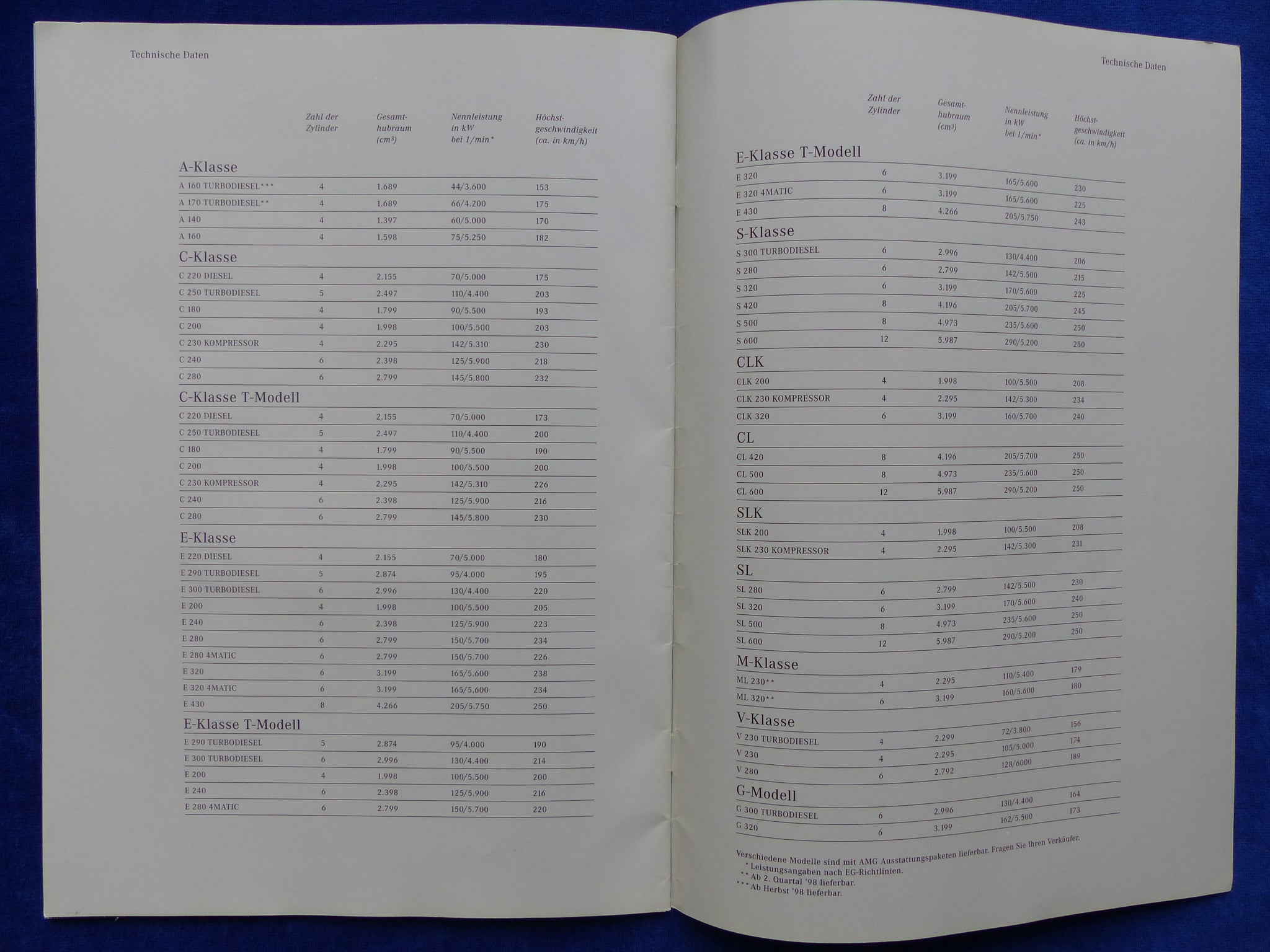 Inhalt / Modelle: u.a. A-, C-, E-, M-, G-, S-Klasse, CLK, CL, SLK, SL - Modelljahr 1998