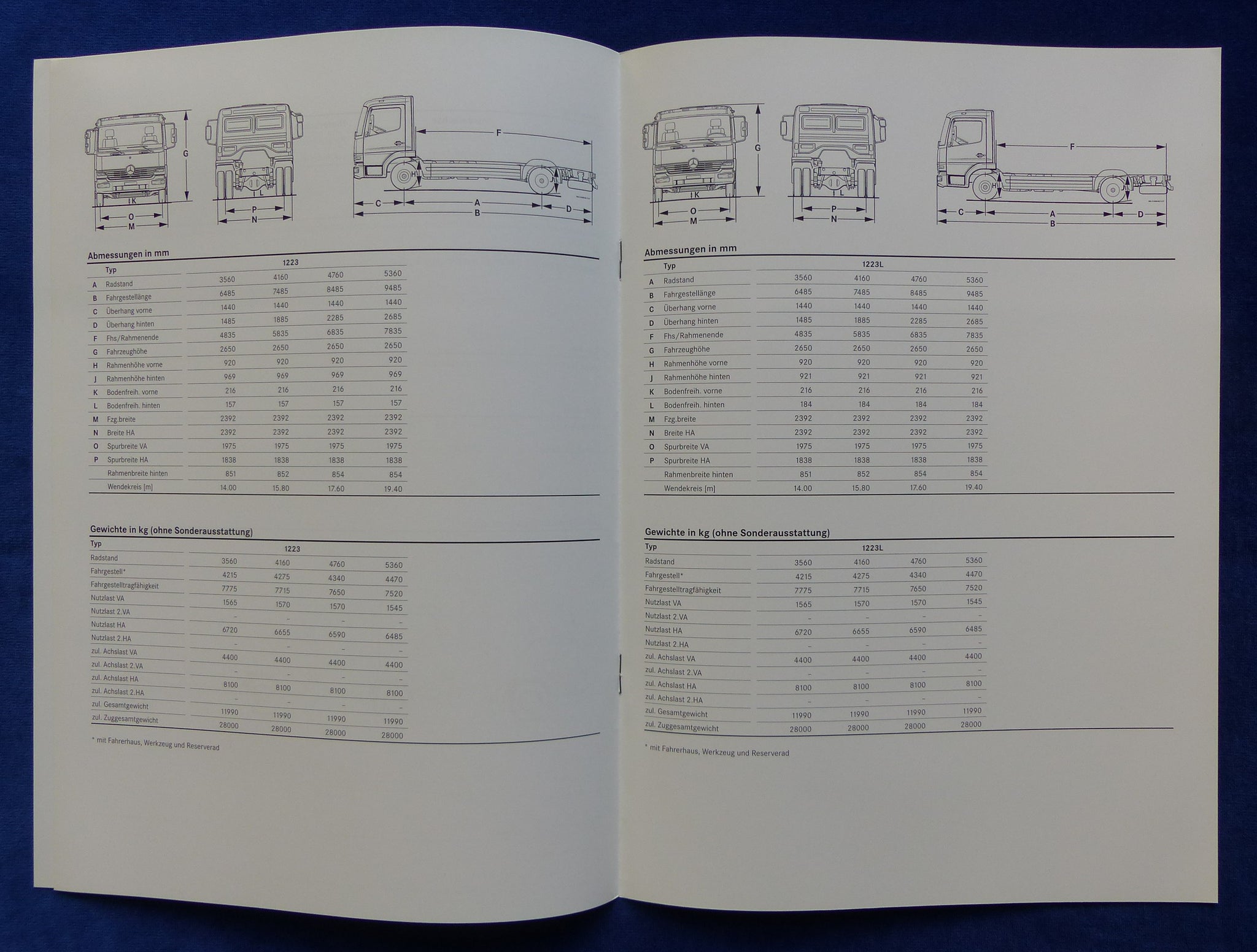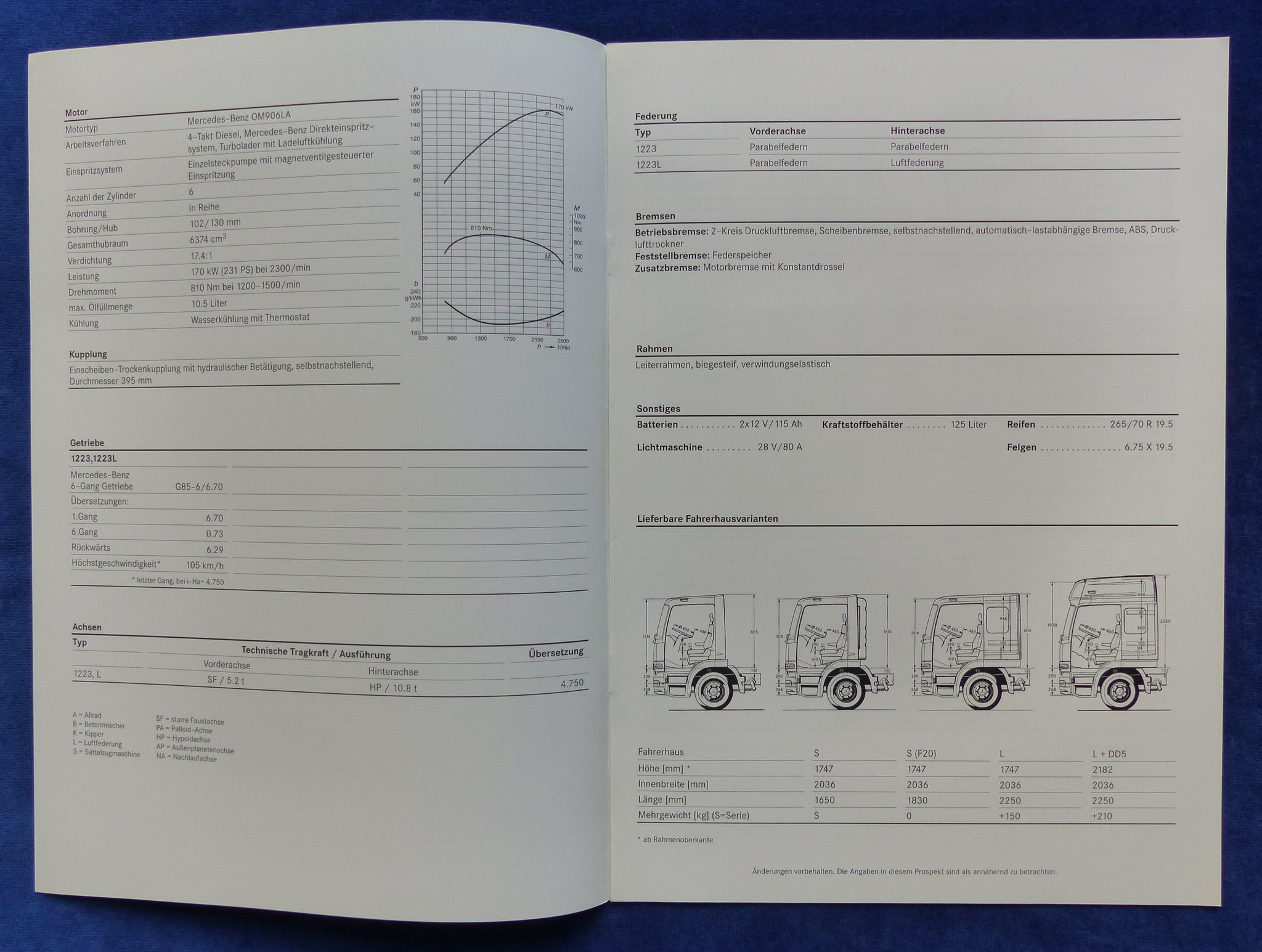 Inhalt / Modelle: Technische Daten Atego 1223 / 1223 L - Modelljahr 1999