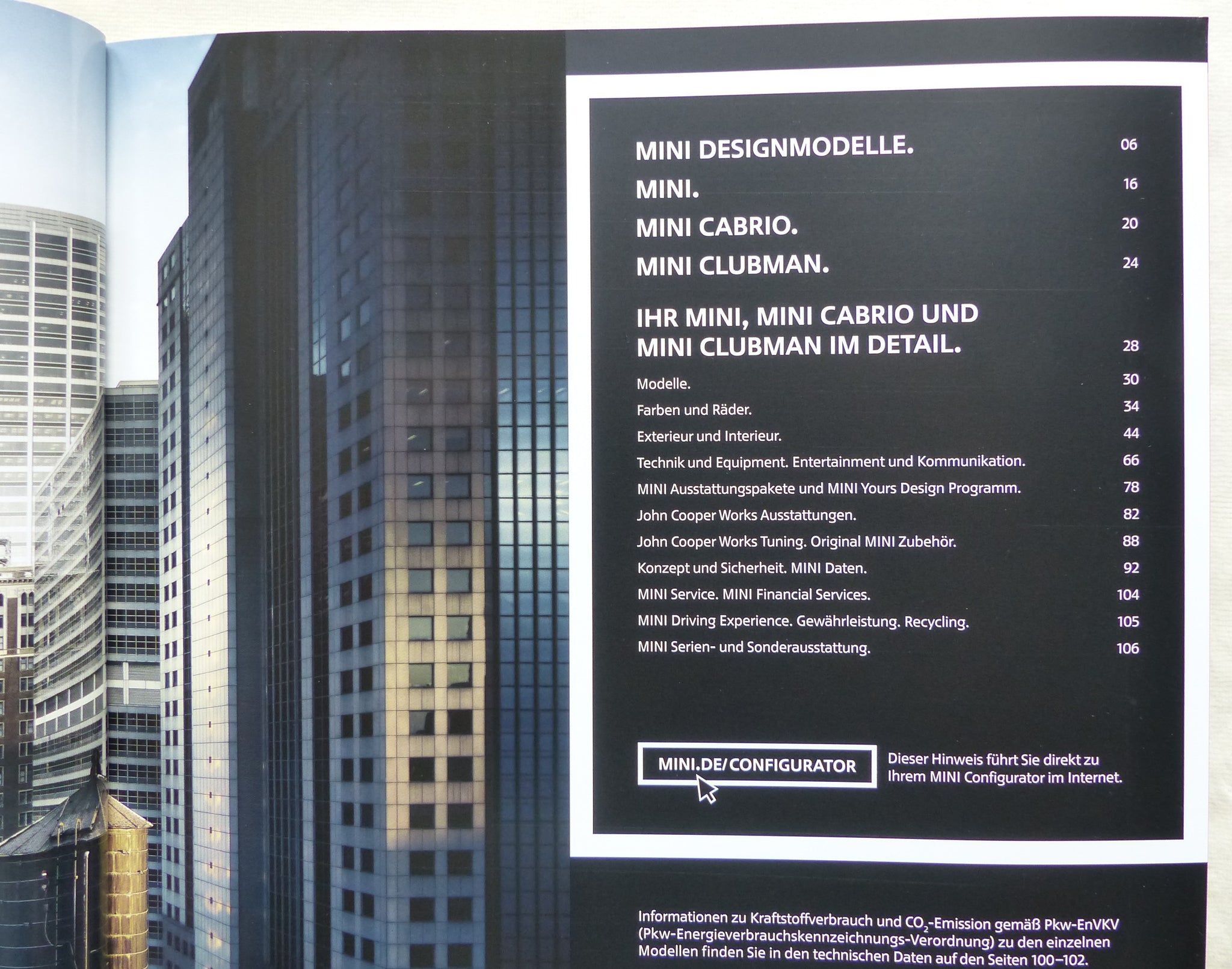 Inhalt / Modelle: siehe Bild 2 - u.a. Designmodelle, One, Cooper, Cooper S, JCW vom 3-Türer / Cabrio / Clubman - Modelljahr 2013
