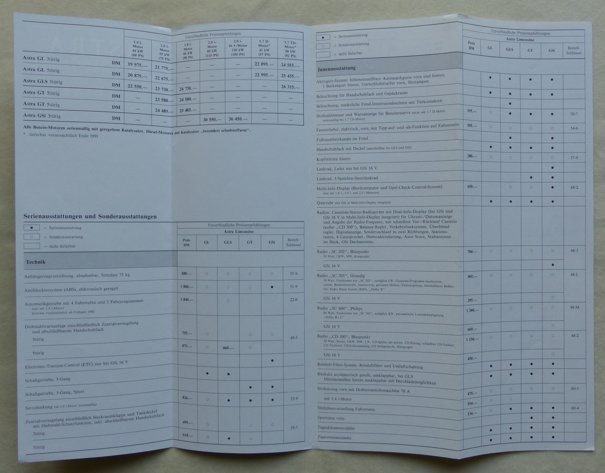 Inhalt / Modelle: u.a. Astra GL / GLS / GT / GSi - Modelljahr 1992