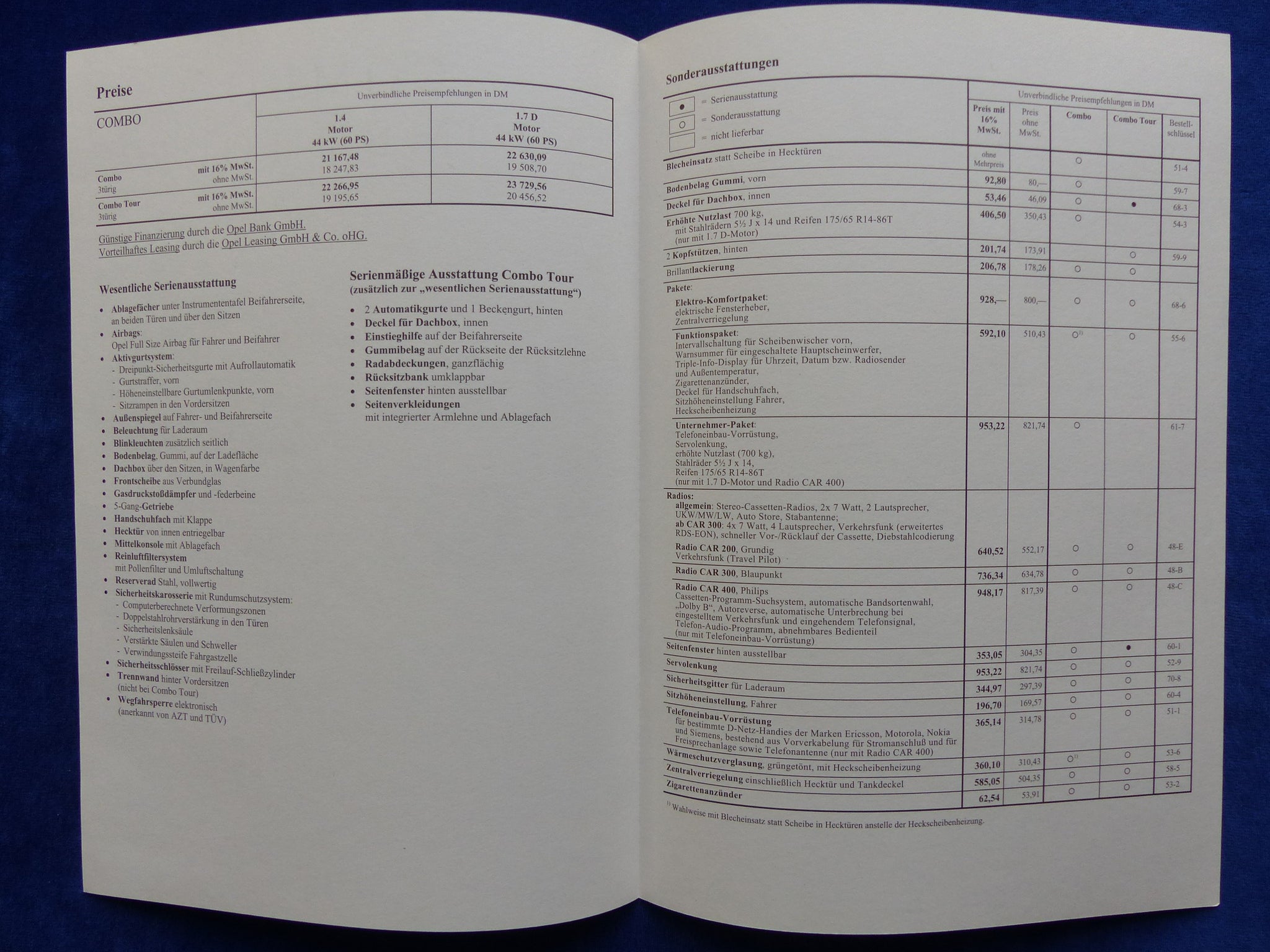 Inhalt / Modelle: u.a. Combo / Combo Tour - Modelljahr 1998
