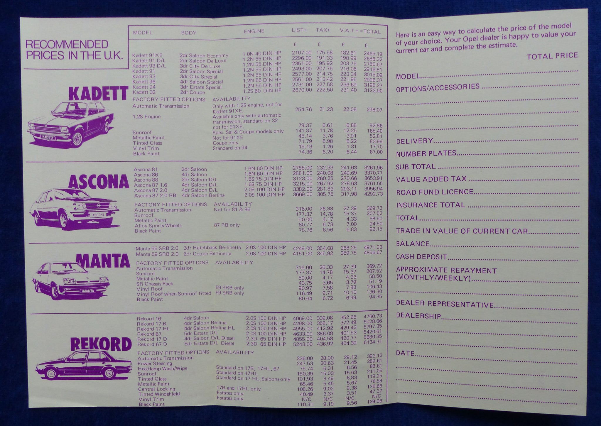 Inhalt / Modelle: u.a. Kadett / Ascona / Manta / Rekord
